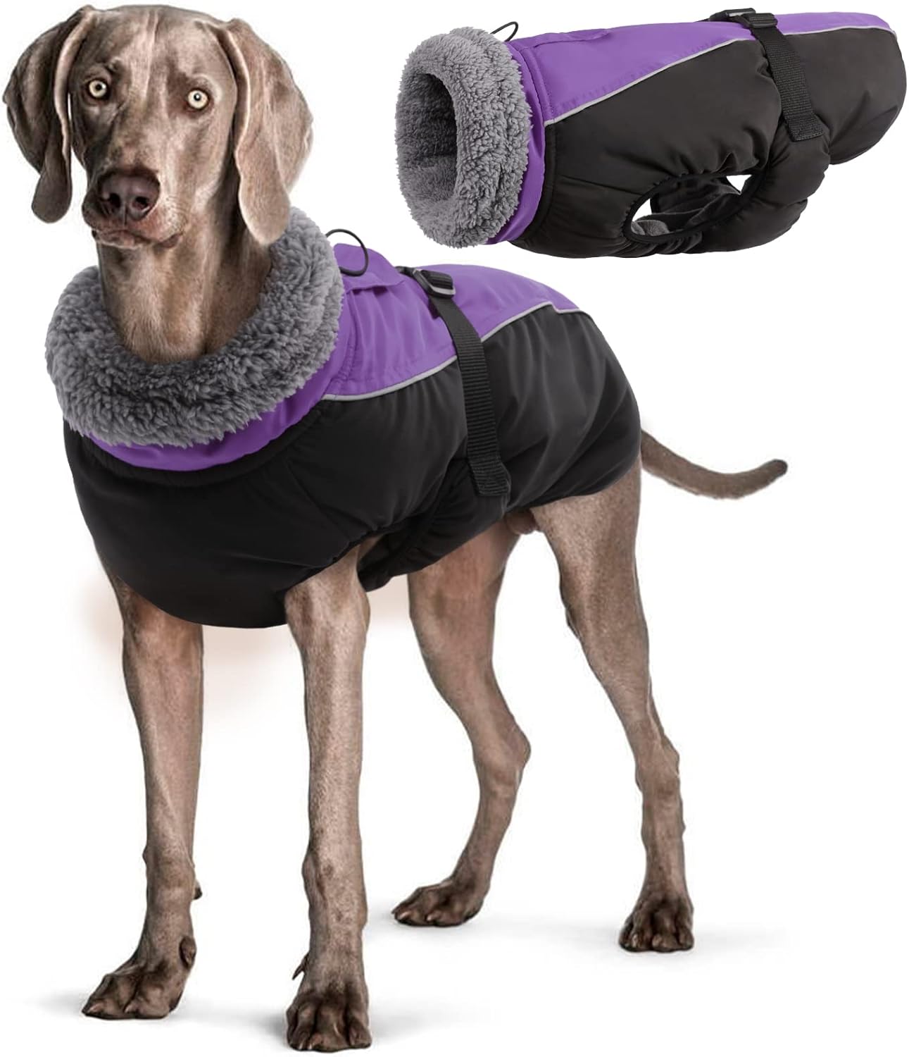 Waterproof shell – the outer material is windproof, waterproof and breathable. Polar fleece lining – warm, comfortable fleece lining. With faux fur lined roll collar – the humanised turtleneck can be opened and closed if necessary and provides additional weather protection when the wind refreshes. Reflective strip design: To keep the safety of dogs during outdoor activities at night, so you can quickly identify dogs in the dark. Harness/leash hole: You can also attach a dog lead to the opening, comfortable to walk dogs. Suitable for most breeds: 6 sizes with 6 designs, from S-3XL.