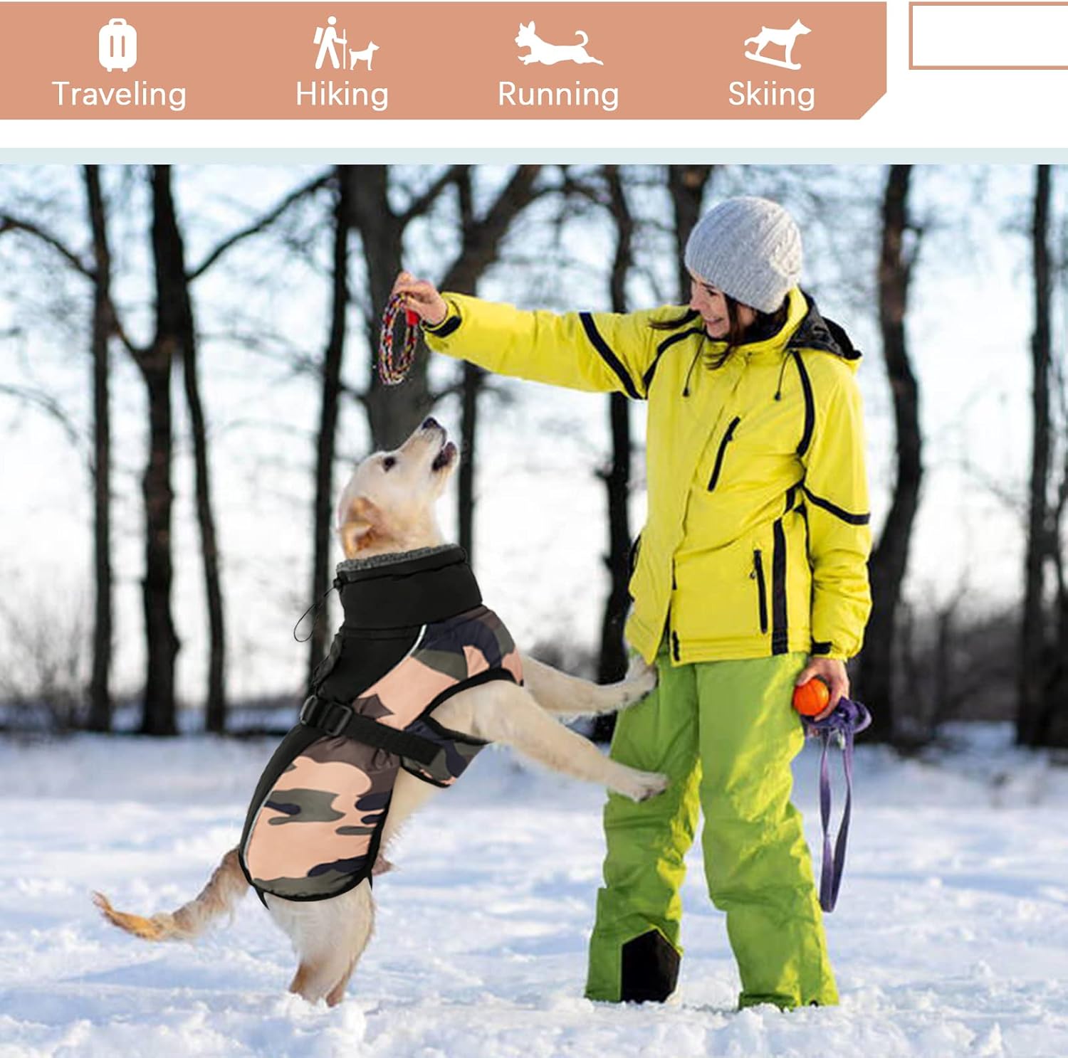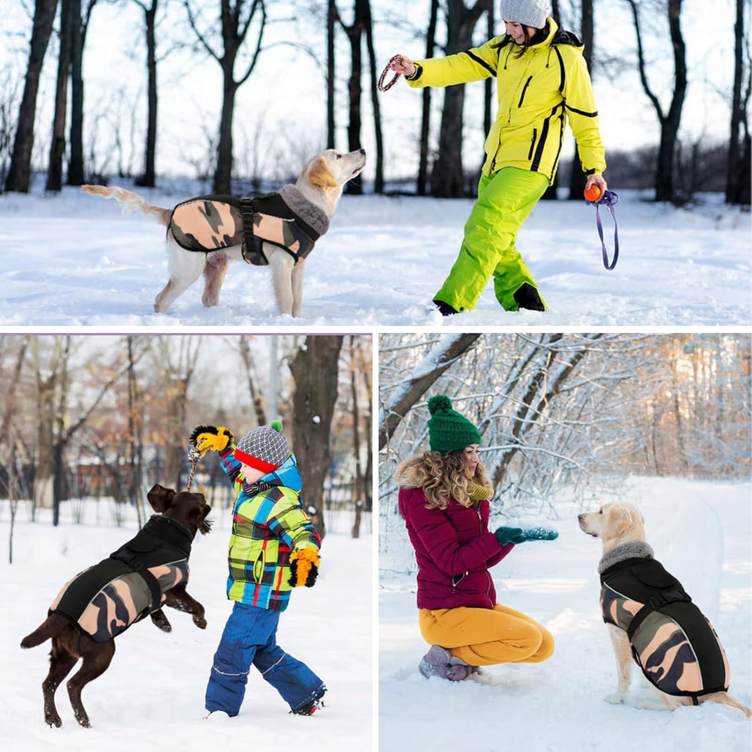 Waterproof shell – the outer material is windproof, waterproof and breathable. Polar fleece lining – warm, comfortable fleece lining. With faux fur lined roll collar – the humanised turtleneck can be opened and closed if necessary and provides additional weather protection when the wind refreshes. Reflective strip design: To keep the safety of dogs during outdoor activities at night, so you can quickly identify dogs in the dark. Harness/leash hole: You can also attach a dog lead to the opening, comfortable to walk dogs. Suitable for most breeds: 6 sizes with 6 designs, from S-3XL.