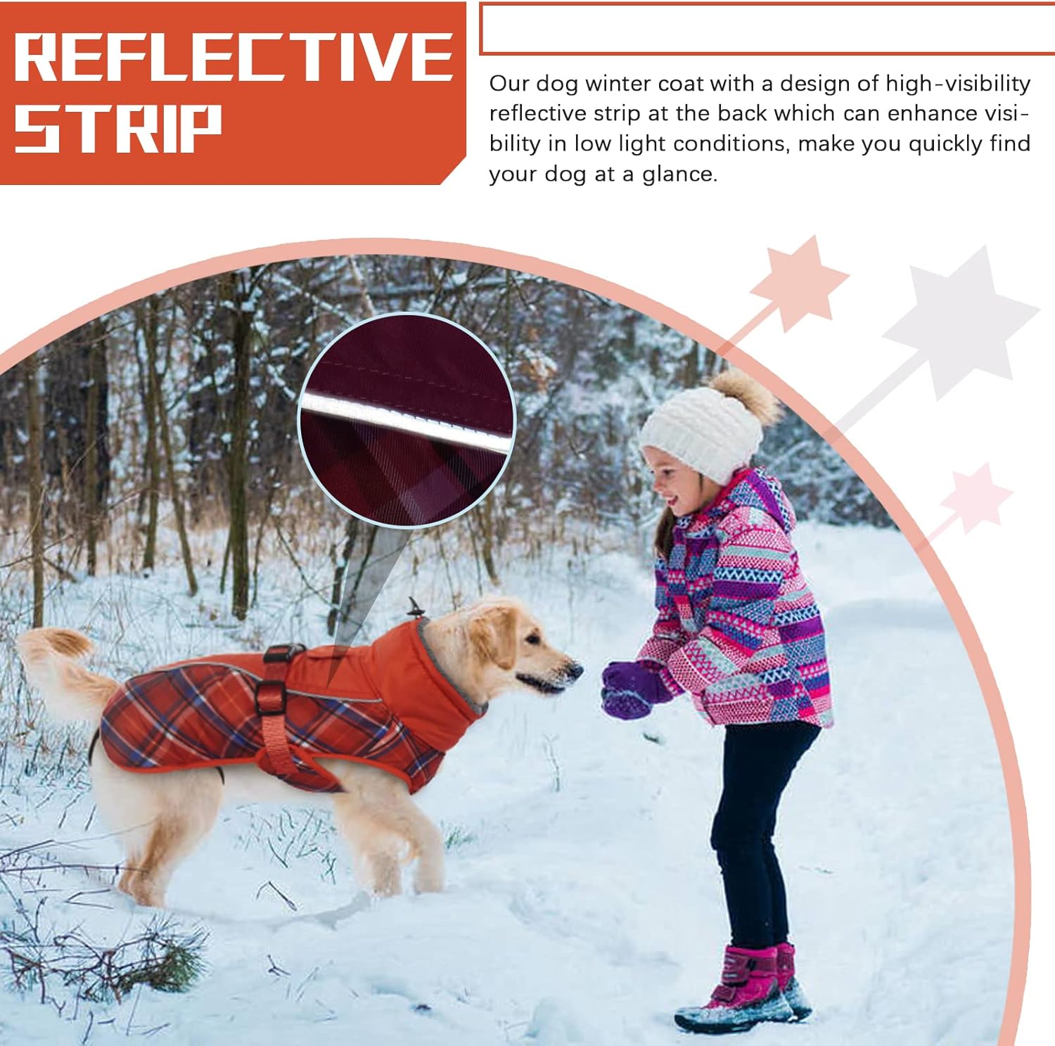 Waterproof shell – the outer material is windproof, waterproof and breathable. Polar fleece lining – warm, comfortable fleece lining. With faux fur lined roll collar – the humanised turtleneck can be opened and closed if necessary and provides additional weather protection when the wind refreshes. Reflective strip design: To keep the safety of dogs during outdoor activities at night, so you can quickly identify dogs in the dark. Harness/leash hole: You can also attach a dog lead to the opening, comfortable to walk dogs. Suitable for most breeds: 6 sizes with 6 designs, from S-3XL.