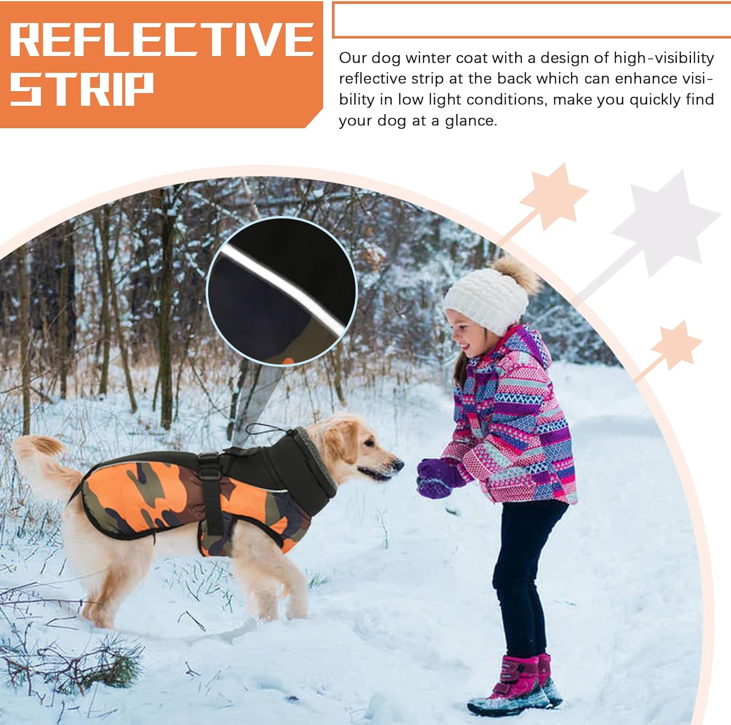 Waterproof shell – the outer material is windproof, waterproof and breathable. Polar fleece lining – warm, comfortable fleece lining. With faux fur lined roll collar – the humanised turtleneck can be opened and closed if necessary and provides additional weather protection when the wind refreshes. Reflective strip design: To keep the safety of dogs during outdoor activities at night, so you can quickly identify dogs in the dark. Harness/leash hole: You can also attach a dog lead to the opening, comfortable to walk dogs. Suitable for most breeds: 6 sizes with 6 designs, from S-3XL.