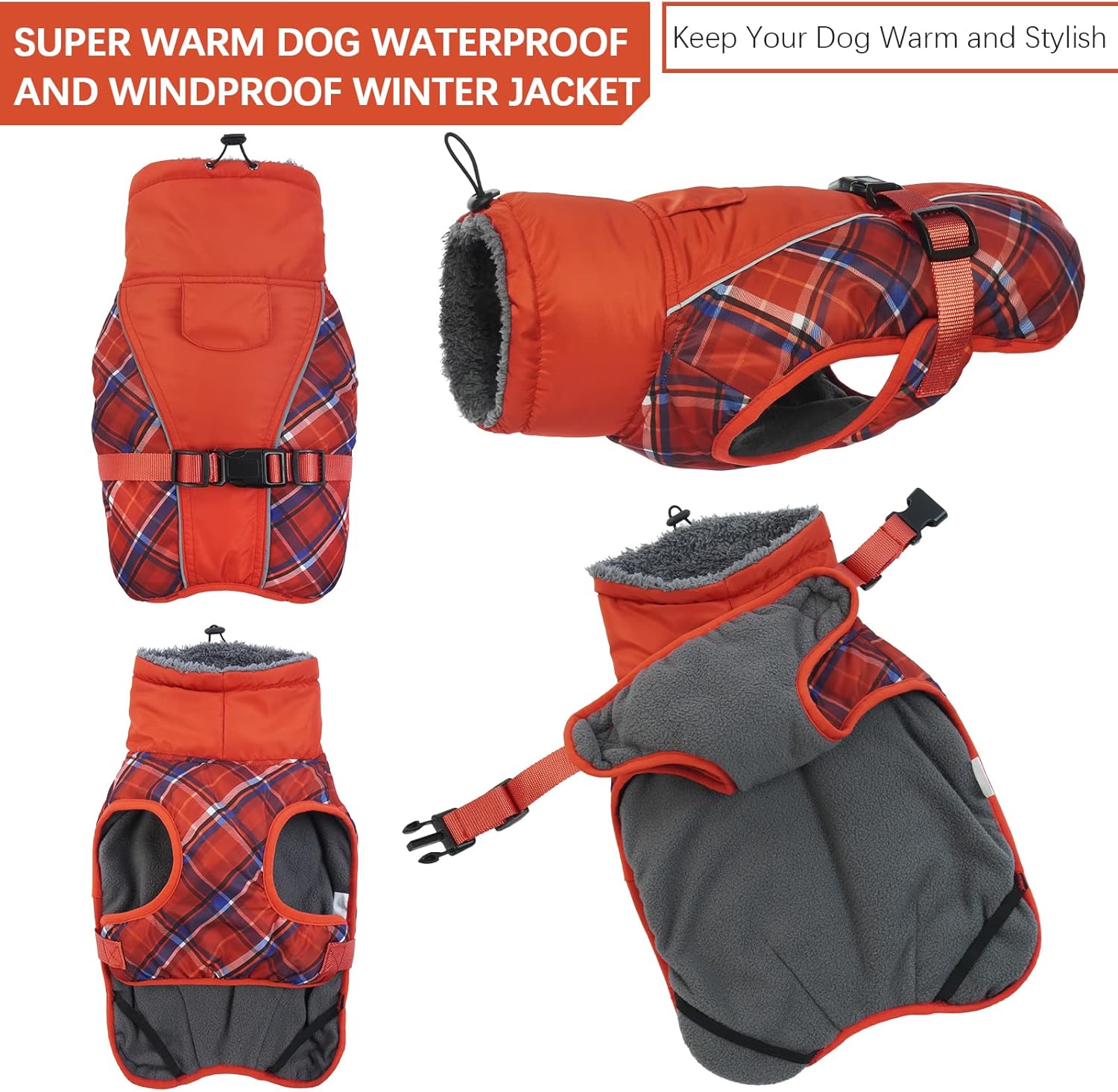 Waterproof shell – the outer material is windproof, waterproof and breathable. Polar fleece lining – warm, comfortable fleece lining. With faux fur lined roll collar – the humanised turtleneck can be opened and closed if necessary and provides additional weather protection when the wind refreshes. Reflective strip design: To keep the safety of dogs during outdoor activities at night, so you can quickly identify dogs in the dark. Harness/leash hole: You can also attach a dog lead to the opening, comfortable to walk dogs. Suitable for most breeds: 6 sizes with 6 designs, from S-3XL.