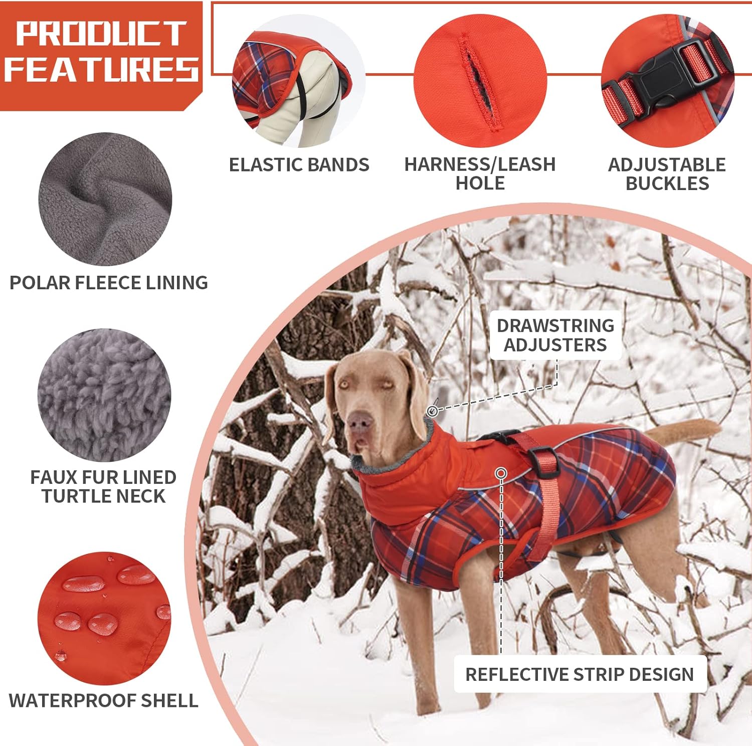 Waterproof shell – the outer material is windproof, waterproof and breathable. Polar fleece lining – warm, comfortable fleece lining. With faux fur lined roll collar – the humanised turtleneck can be opened and closed if necessary and provides additional weather protection when the wind refreshes. Reflective strip design: To keep the safety of dogs during outdoor activities at night, so you can quickly identify dogs in the dark. Harness/leash hole: You can also attach a dog lead to the opening, comfortable to walk dogs. Suitable for most breeds: 6 sizes with 6 designs, from S-3XL.