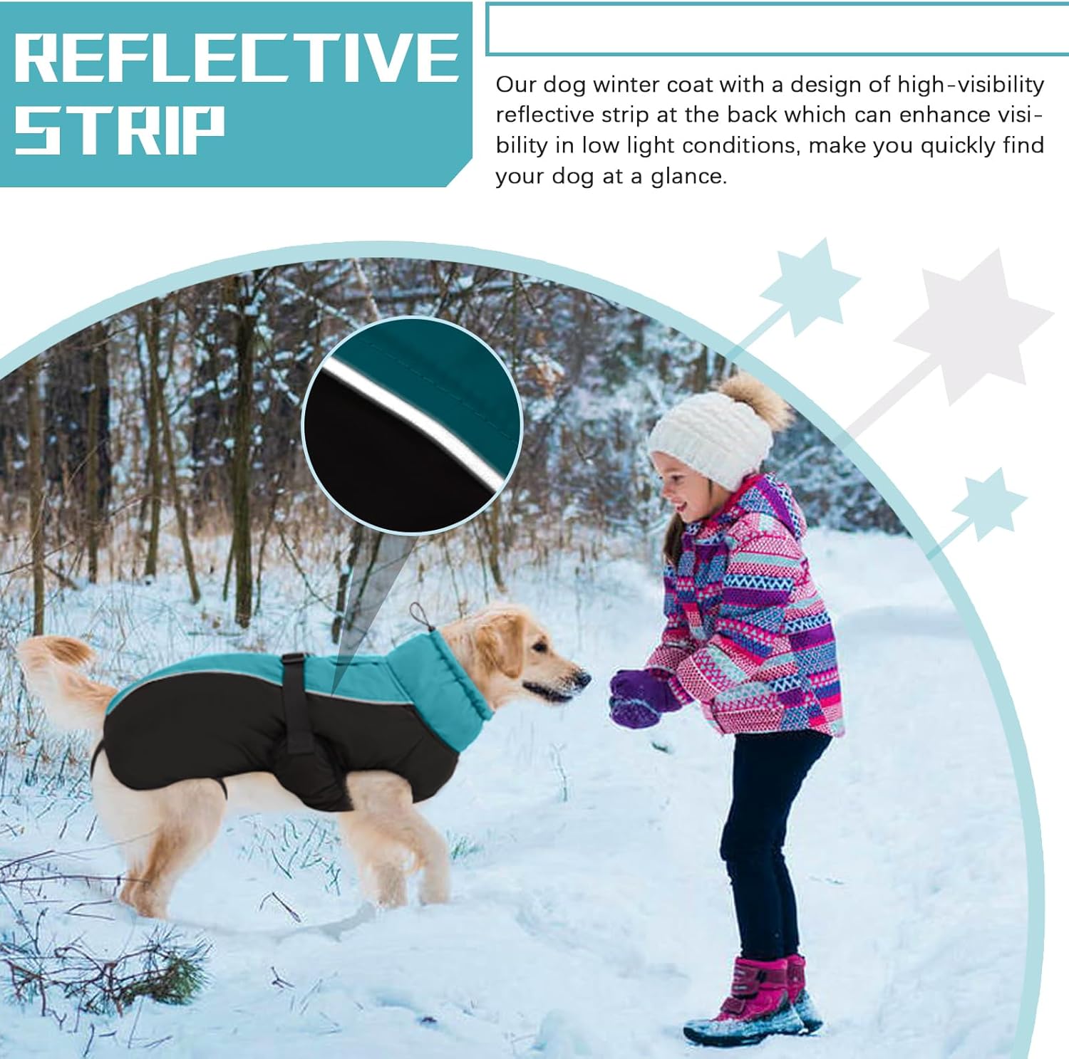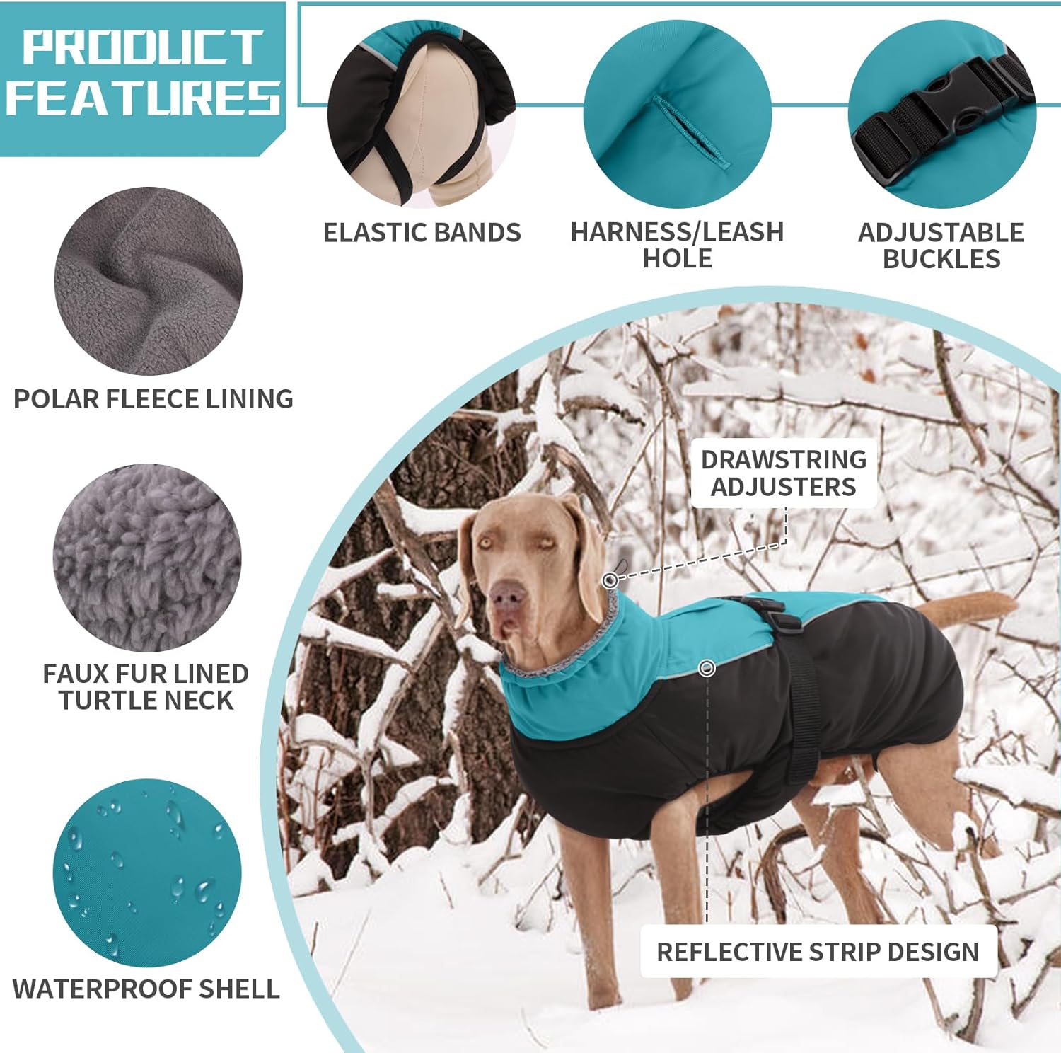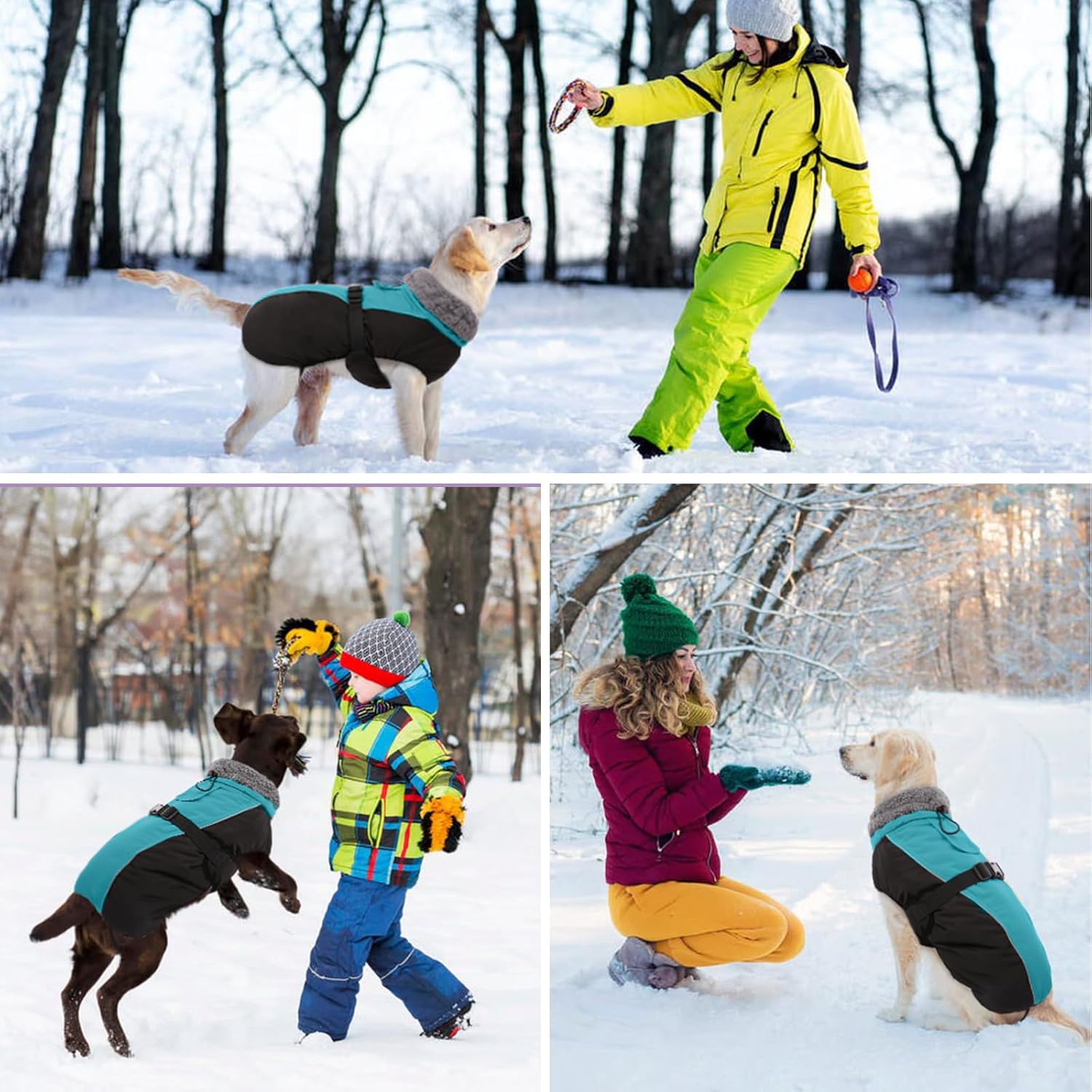 Waterproof shell – the outer material is windproof, waterproof and breathable. Polar fleece lining – warm, comfortable fleece lining. With faux fur lined roll collar – the humanised turtleneck can be opened and closed if necessary and provides additional weather protection when the wind refreshes. Reflective strip design: To keep the safety of dogs during outdoor activities at night, so you can quickly identify dogs in the dark. Harness/leash hole: You can also attach a dog lead to the opening, comfortable to walk dogs. Suitable for most breeds: 6 sizes with 6 designs, from S-3XL.