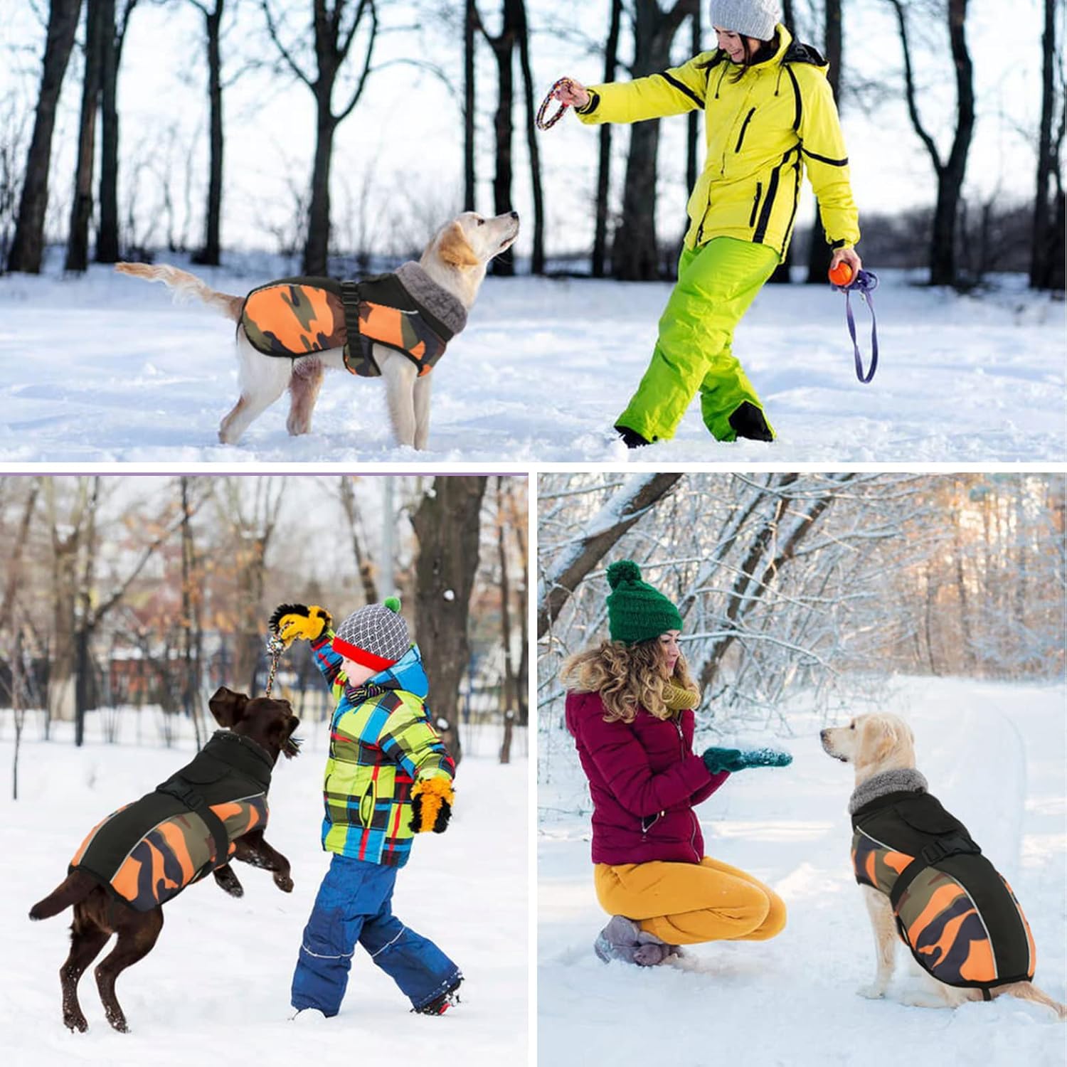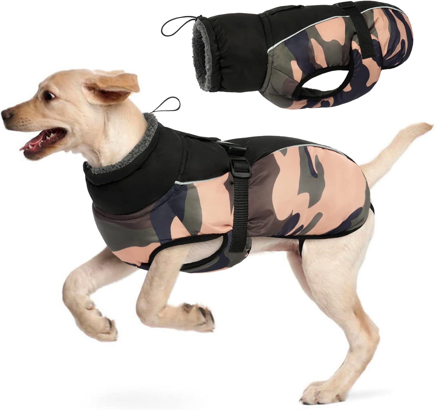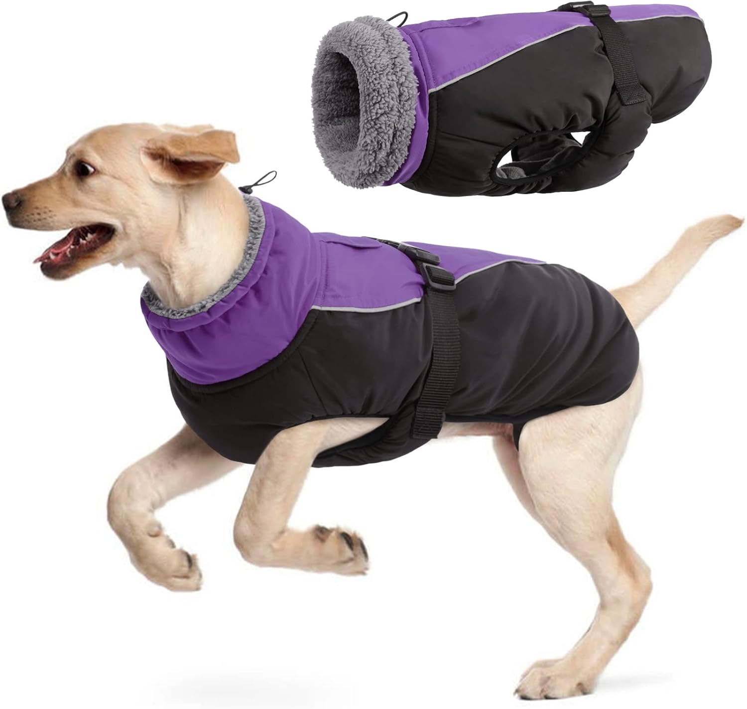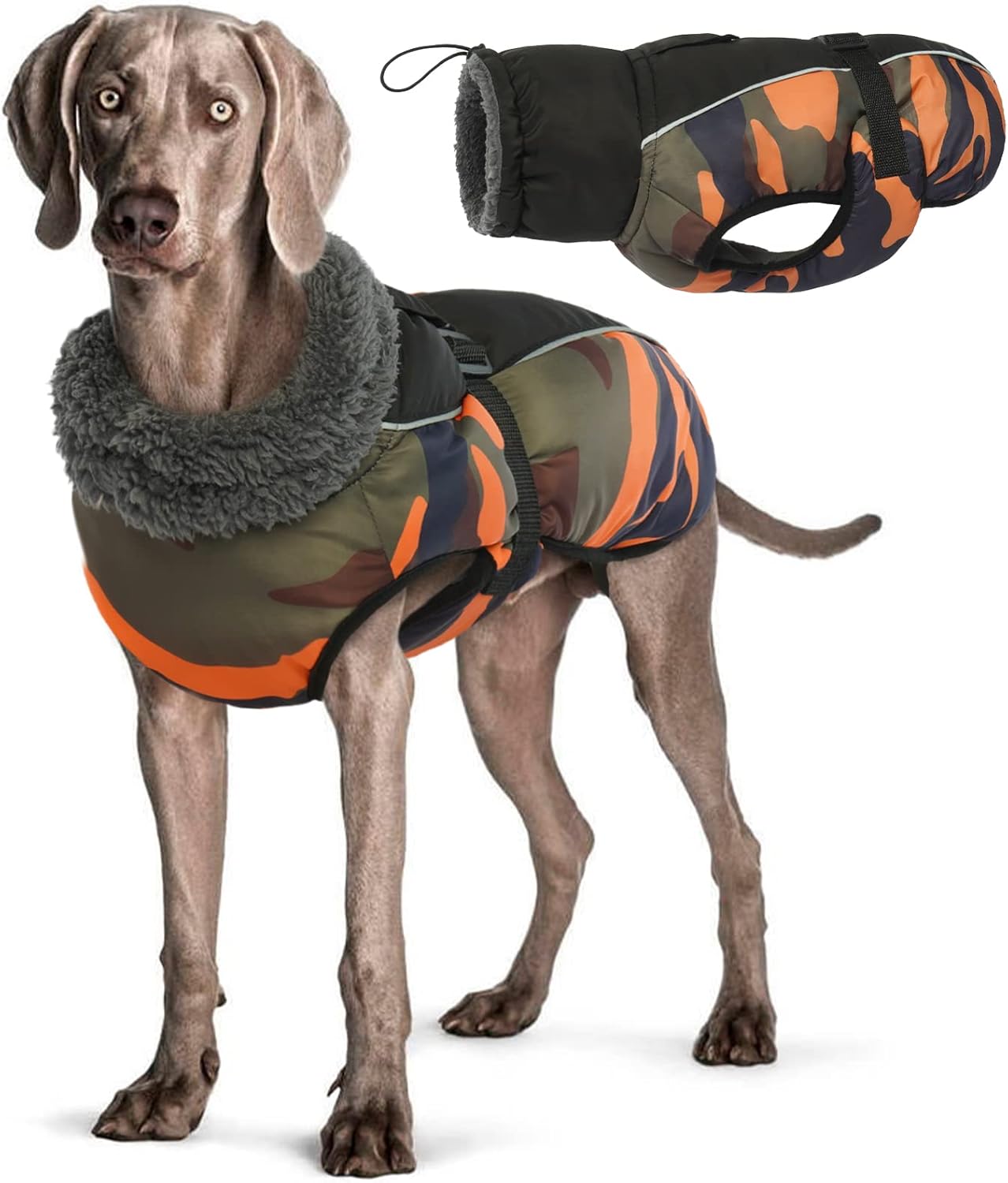 Waterproof shell – the outer material is windproof, waterproof and breathable. Polar fleece lining – warm, comfortable fleece lining. With faux fur lined roll collar – the humanised turtleneck can be opened and closed if necessary and provides additional weather protection when the wind refreshes. Reflective strip design: To keep the safety of dogs during outdoor activities at night, so you can quickly identify dogs in the dark. Harness/leash hole: You can also attach a dog lead to the opening, comfortable to walk dogs. Suitable for most breeds: 6 sizes with 6 designs, from S-3XL.