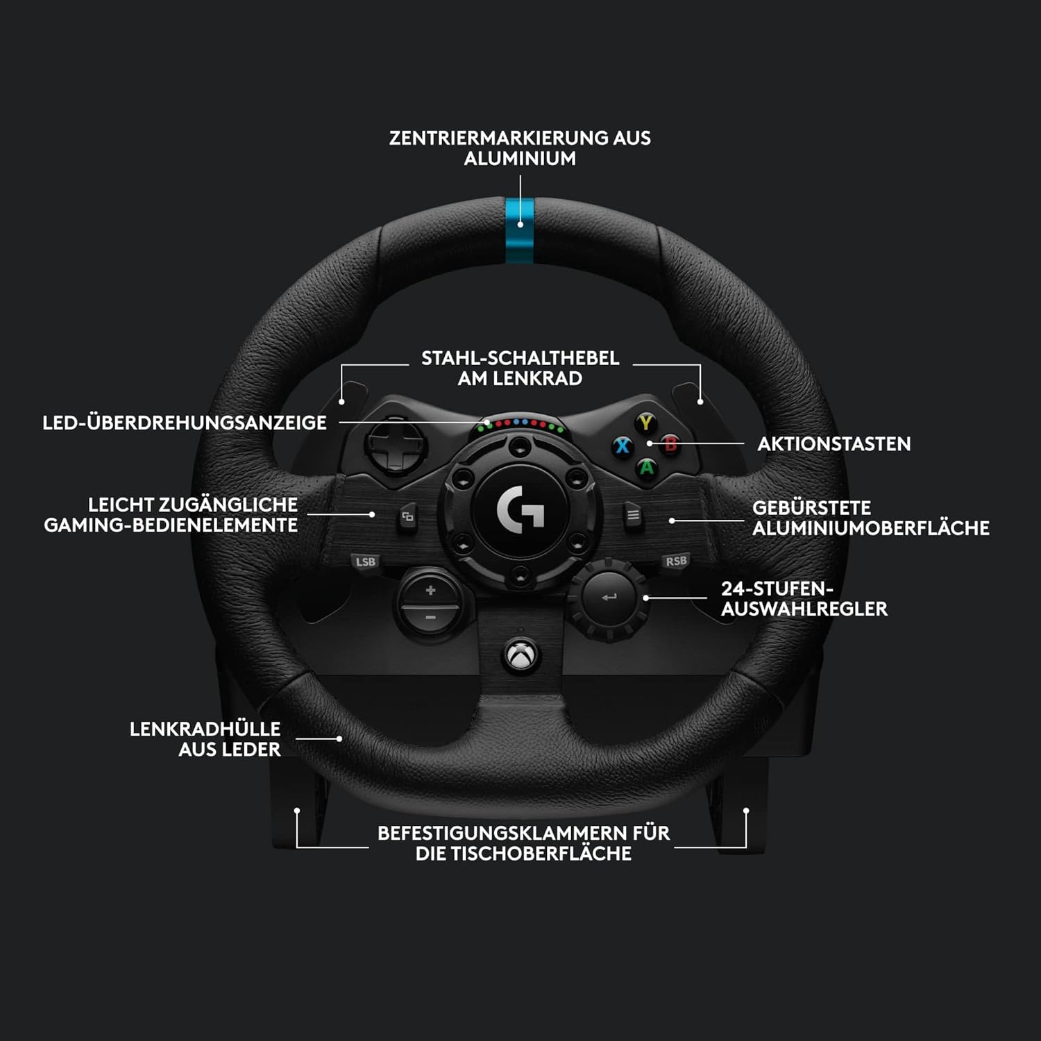 • Съвместимост с игри: G923 за Xbox, съвместим с частта от играта Xbox Series X|S, Xbox One и PC селекции за Trueforce; изтегляне на Logitech G HUB