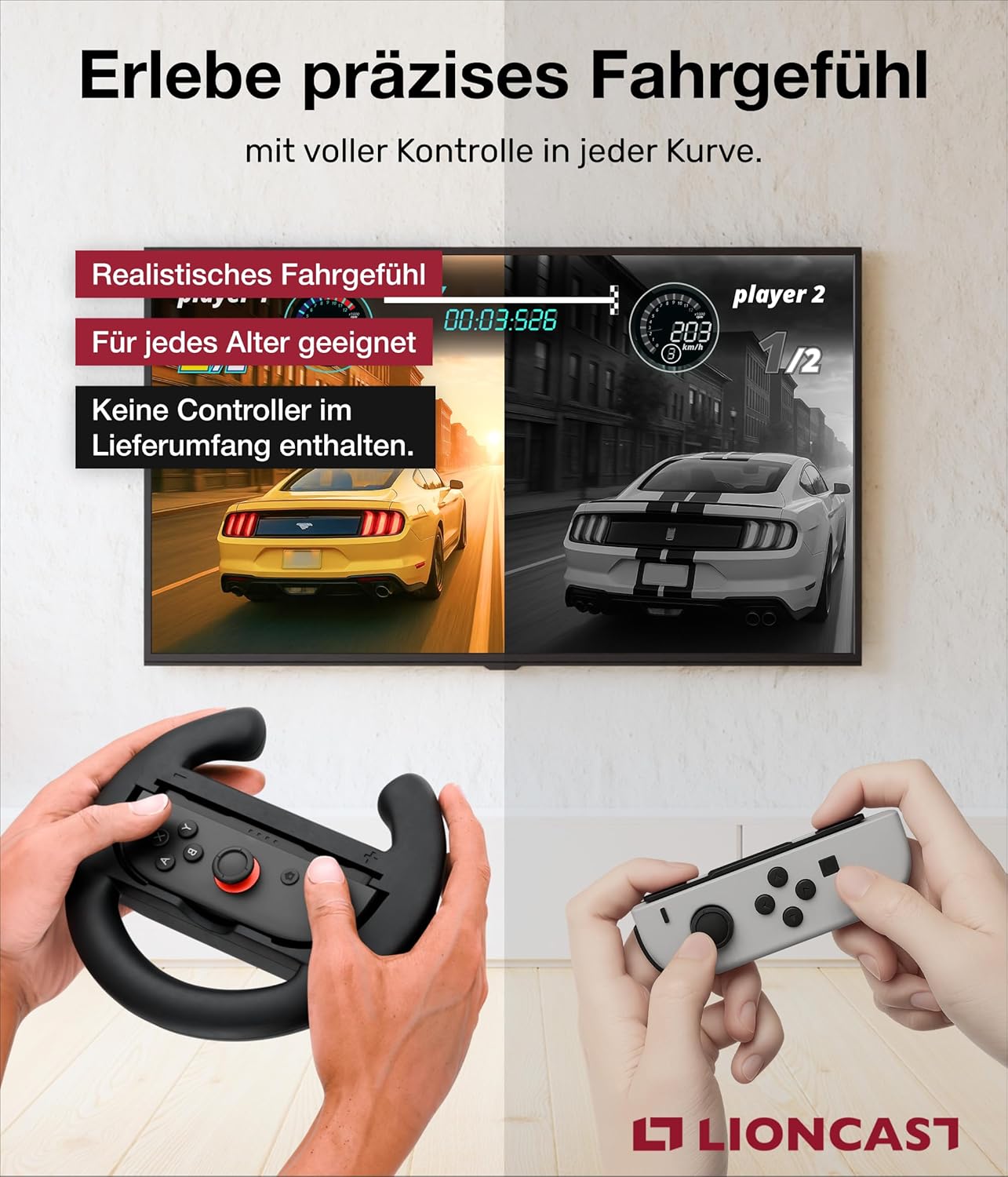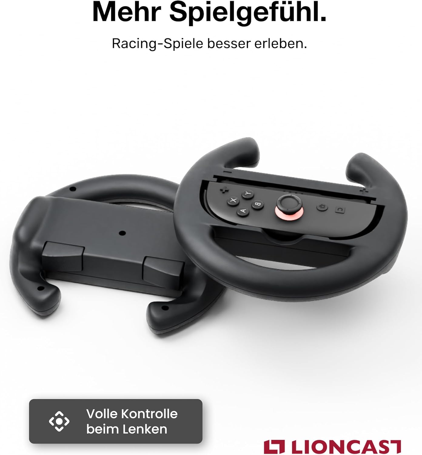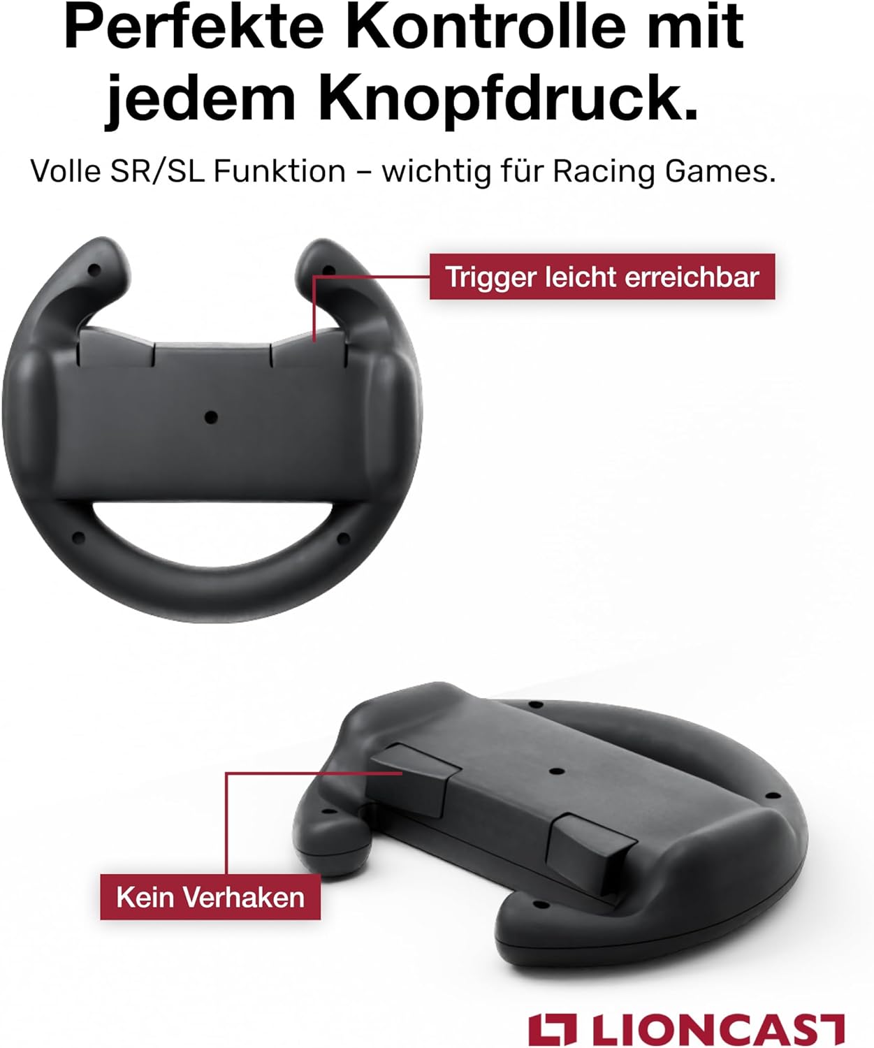 Волан Lioncast, съвместим с Nintendo Switch 2 - комплект от 2 с ергономични дръжки, волан Joy-Con за Switch 2, Nintendo Switch 2 Wheels