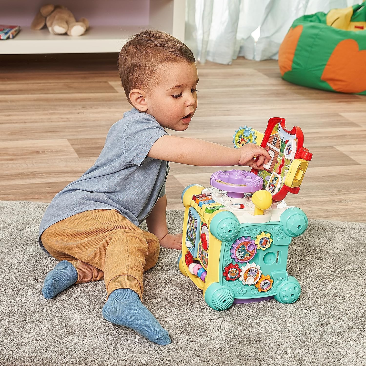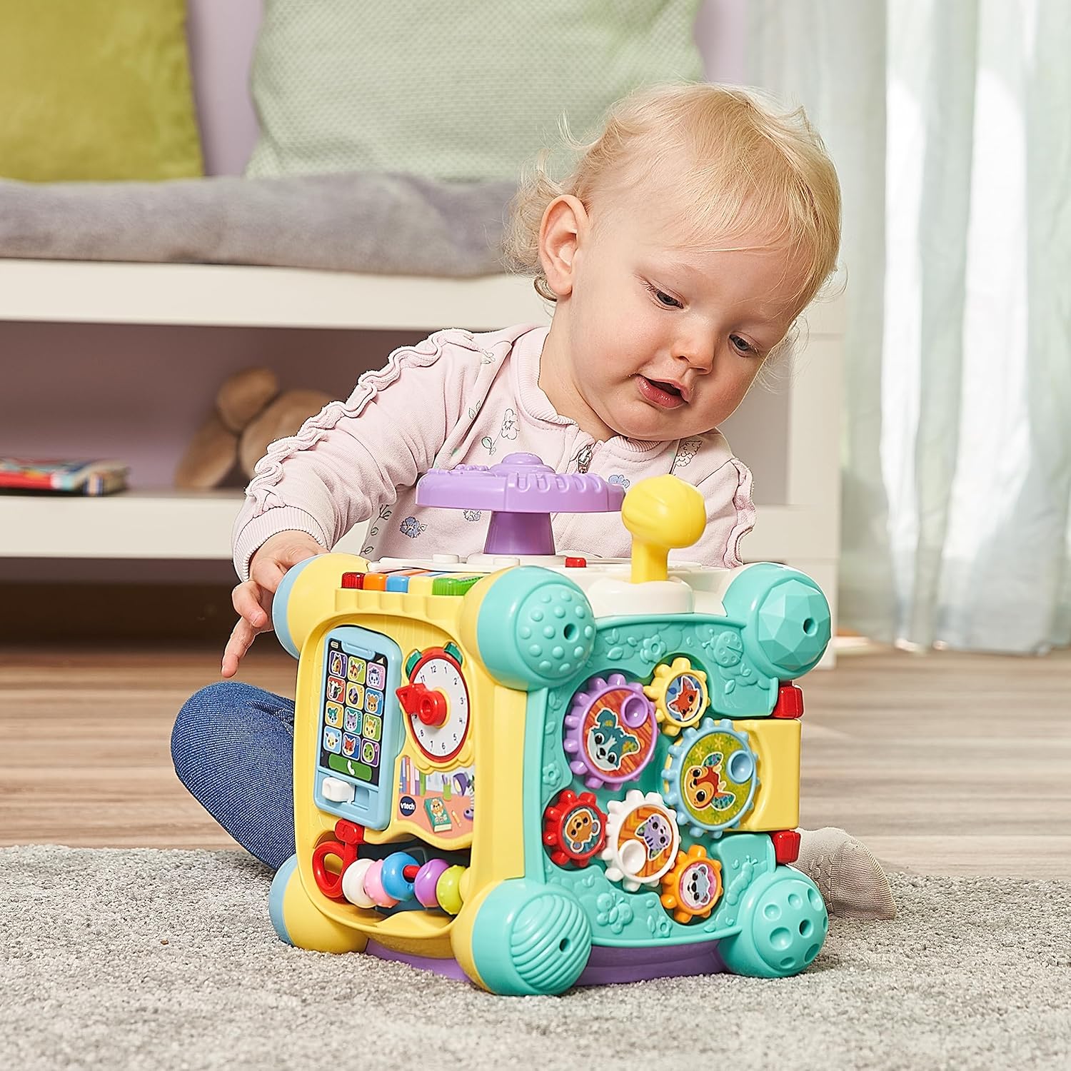 Vtech Baby Fun Explorer Cube - Интерактивен куб за игра с музика, форми и движещи се елементи - За деца на възраст 12-36 месеца