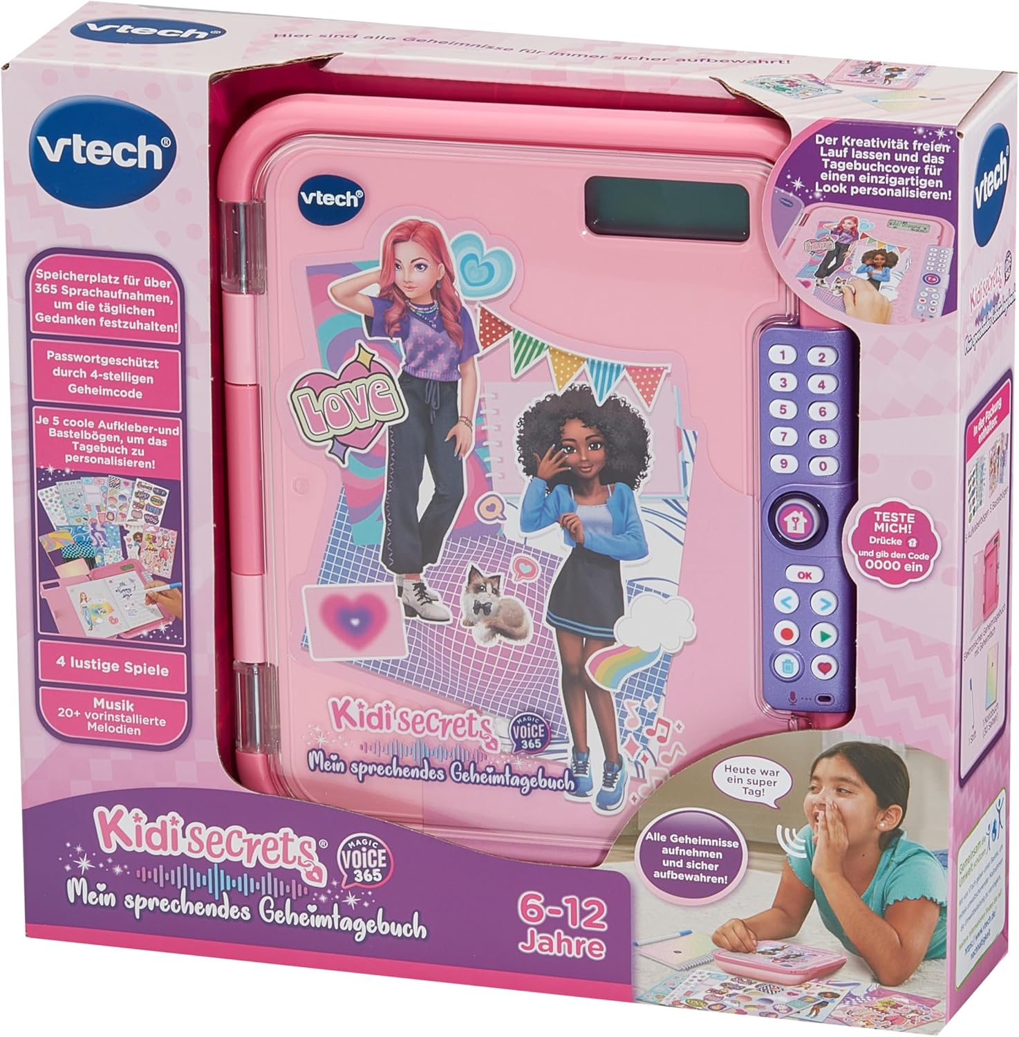 Vtech KidiSecrets – Magic Voice 365 – Дневник 2 в 1 за гласови записи, творчески игри и лични спомени – За деца на възраст 6-12 години
