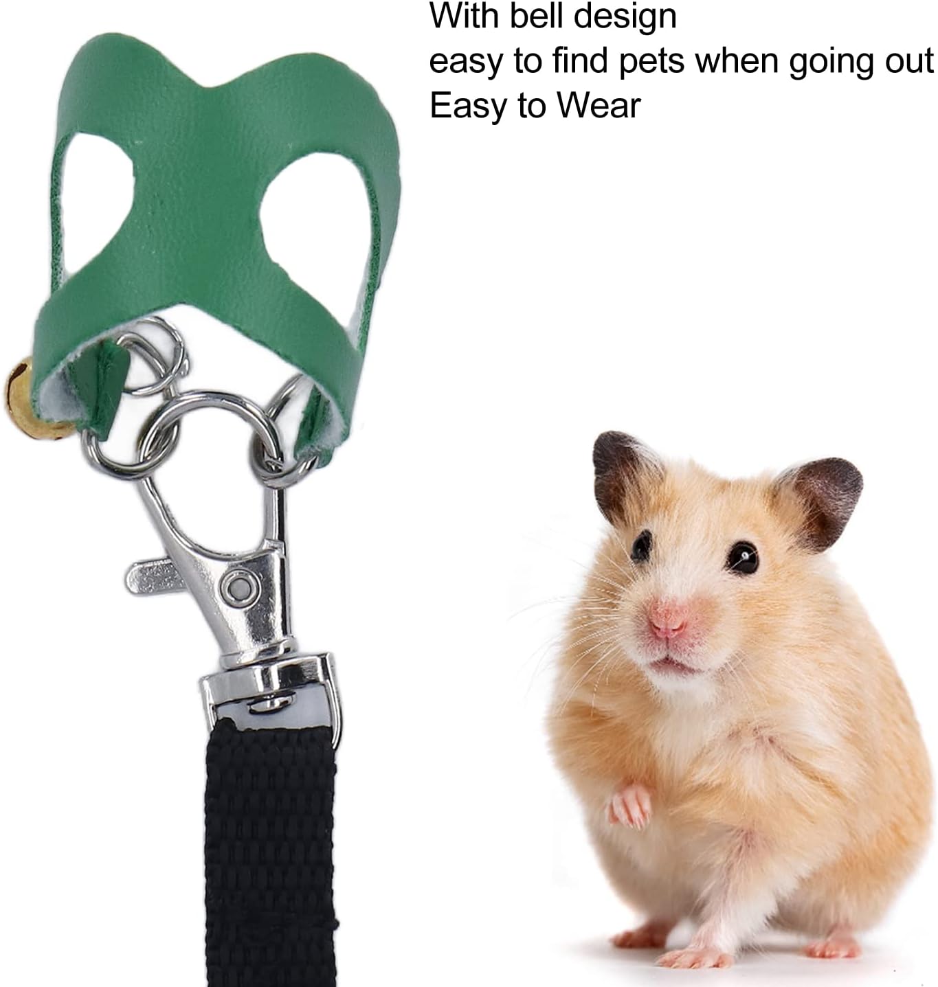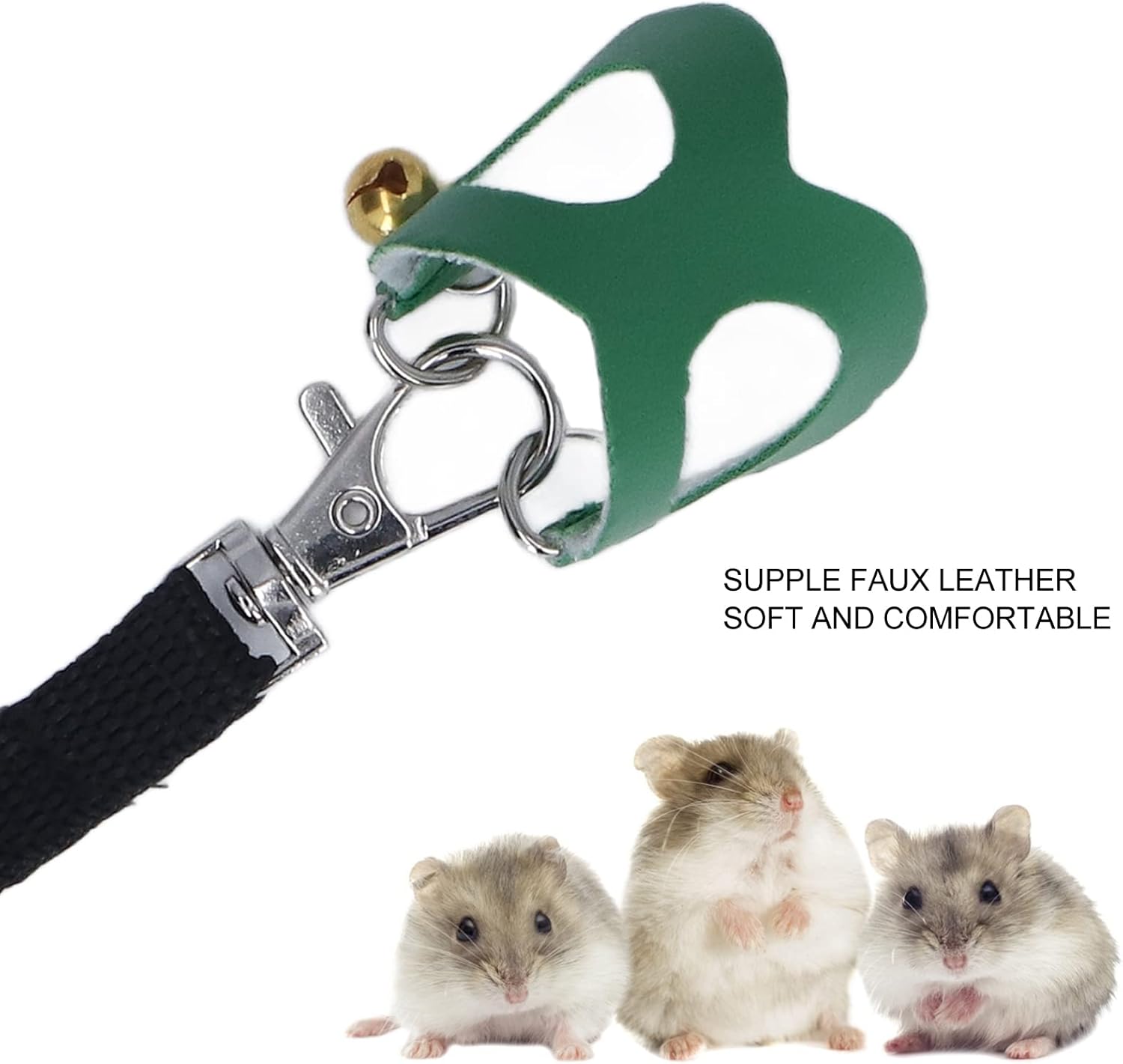 Въже за нагръдник за хамстер, Комплект нагръдник и каишка за домашен любимец, Изкуствена кожа, Мек, Лесен за носене, Комплект нагръдник за плъхове, жилетка и каишка със звънец, за разходка