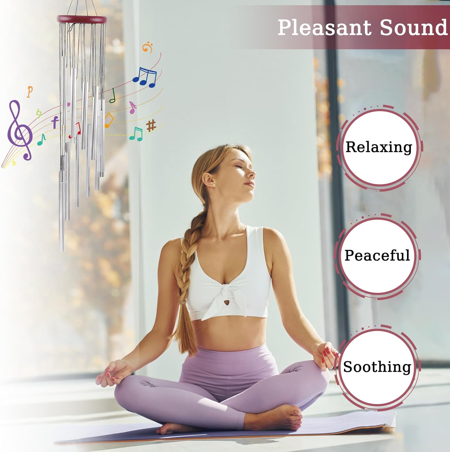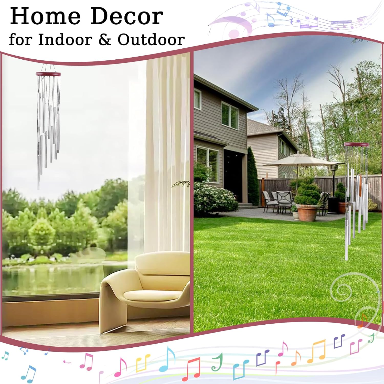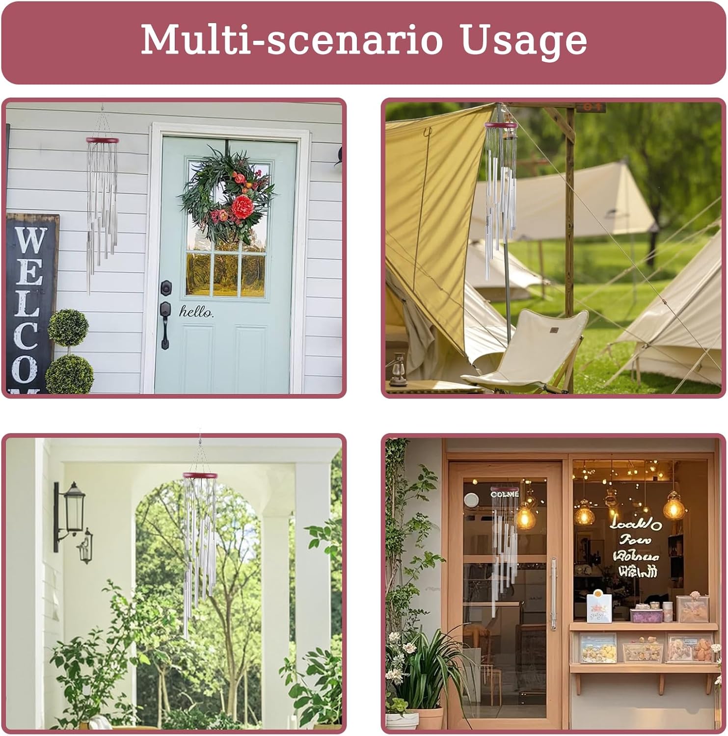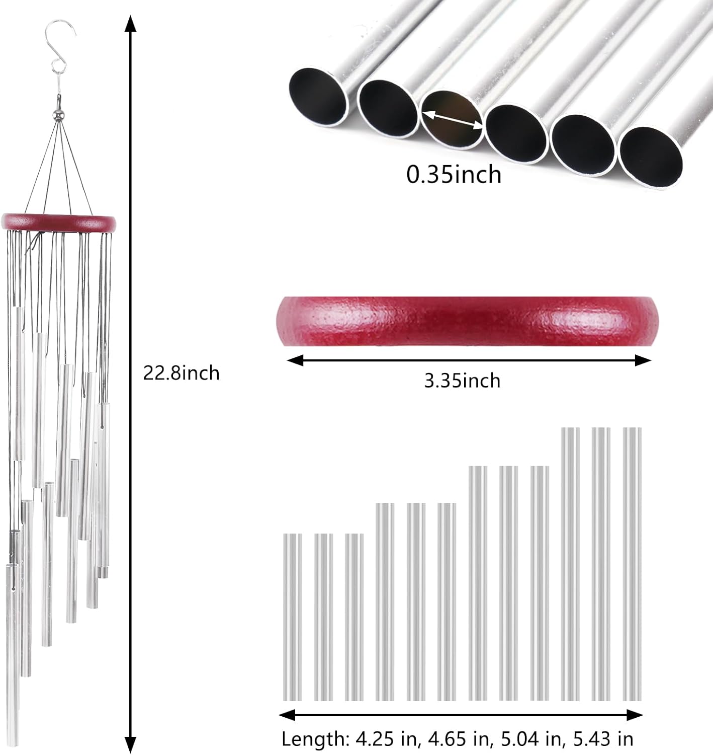 Външен вятърен камбан, алуминиева тръбна вятърна камбанка за външна употреба, градина, двор, сребърна