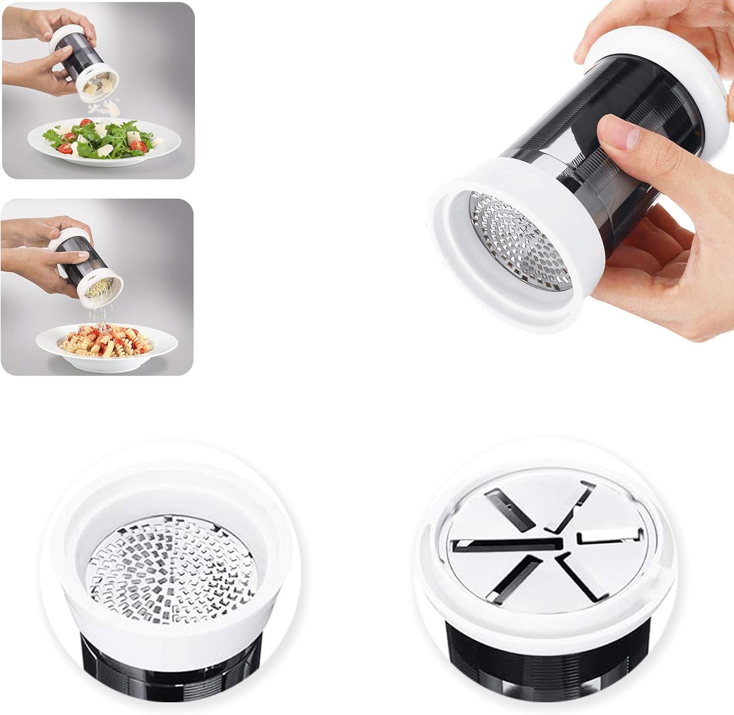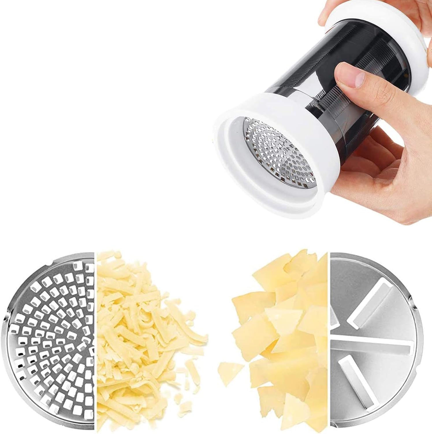【Голям капацитет】 - Можете да настържете сирене във въздуха. Просто плъзнете единия надолу и завъртете горната част, за да настържете сиренето лесно и ефективно.