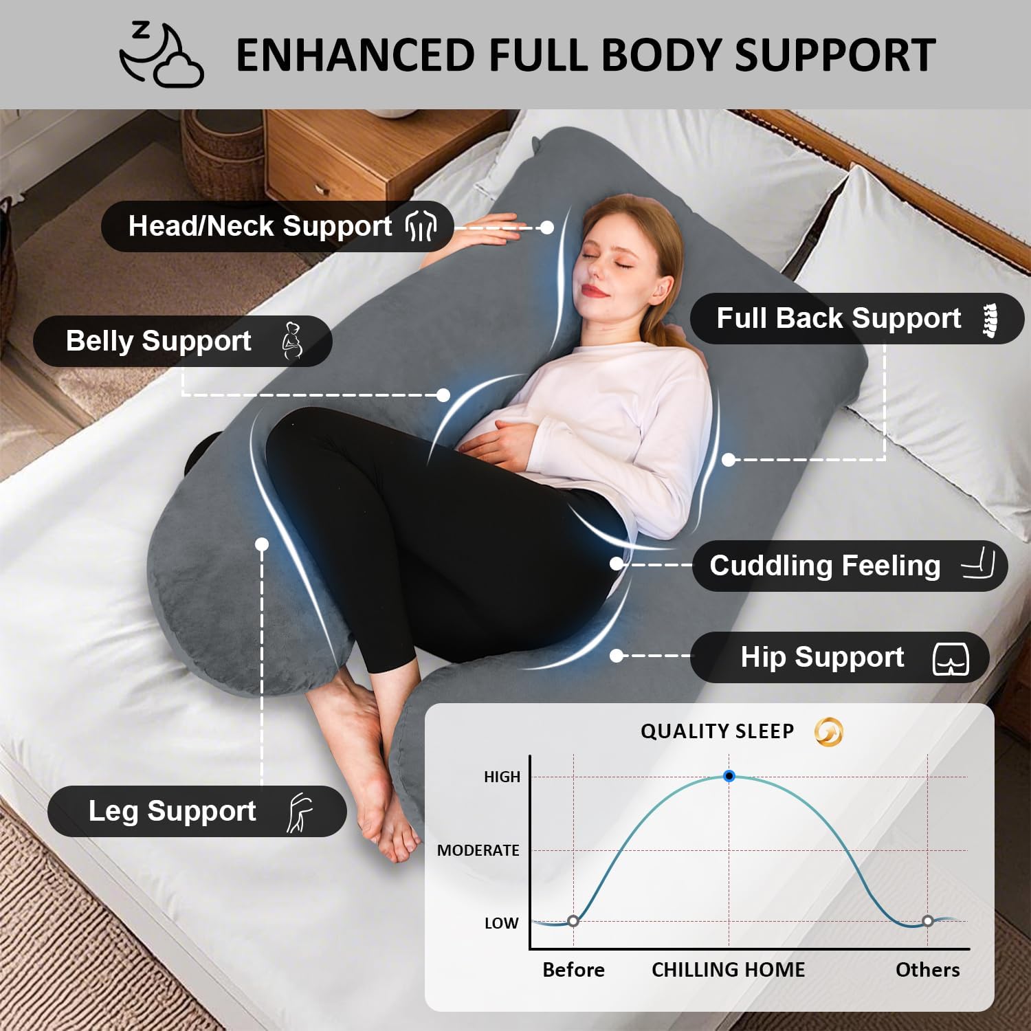 • ДЪЛБОК СЪН ПРЕЗ НОЩТА: Възглавницата за бременни осигурява пълна опора на тялото и облекчава болката, причинена от бременността. Възглавницата за бременни улеснява нощта и подобрява качеството на съня. Идеална възглавница за спане настрани за бременни жени.