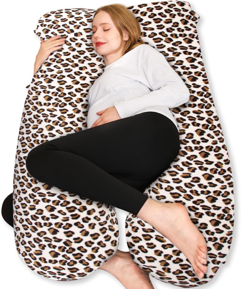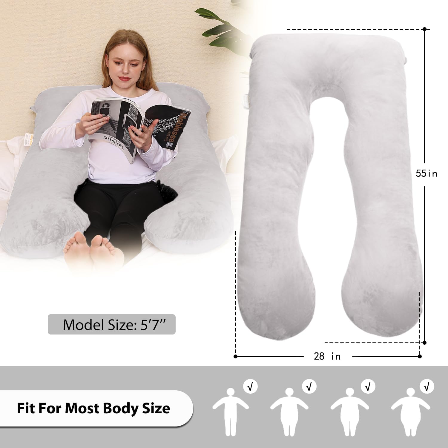 • U-образна възглавница за тяло Comfort: пълна комфортна възглавница за цялото тяло. Размери: 140 см x 70 см x 20 см. Голямата U-образна възглавница за бременни е достатъчно дълга, за да можете да се изпънете и да поддържа тялото си. Контурира вътрешните извивки, като същевременно подравнява бедрата си за неутрално позициониране на ставите, подобно на възглавницата за бременност. Възглавницата за спане настрани ви осигурява комфорт. Като възглавница за кърмене, възглавницата може да улесни кърменето.
