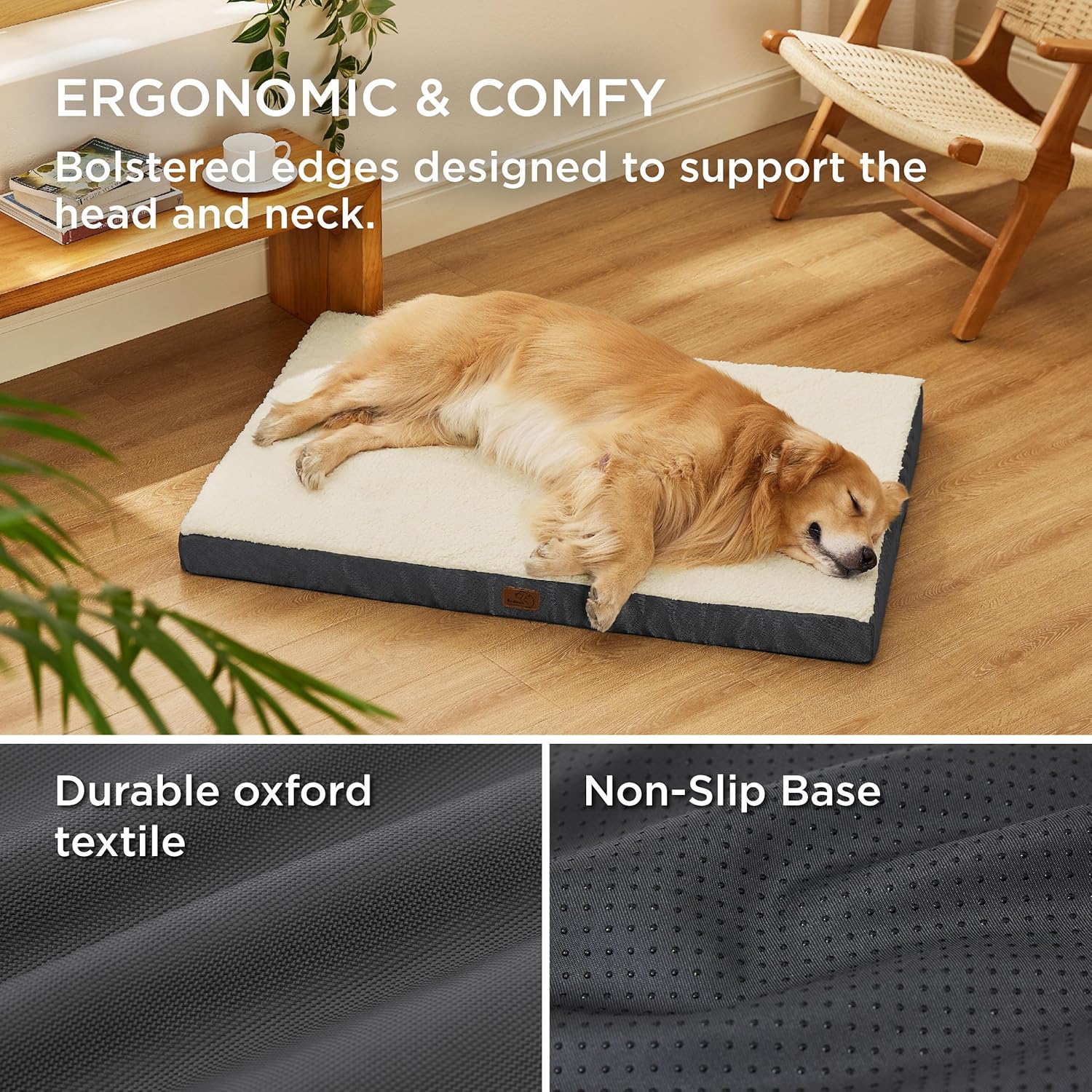 The Bedsure Convoluted Foam Orthopaedic Dog Bed has been designed in a rectangular shape to provide your pets with the correct support for an average dog and keep them cool in those hot months. High density foam provides long lasting comfort and relieves pain, especially for puppies or old pets. Take Bedsure Dog Bed home, let your loved ones jump on the bed and put the most satisfied expression on the little face.