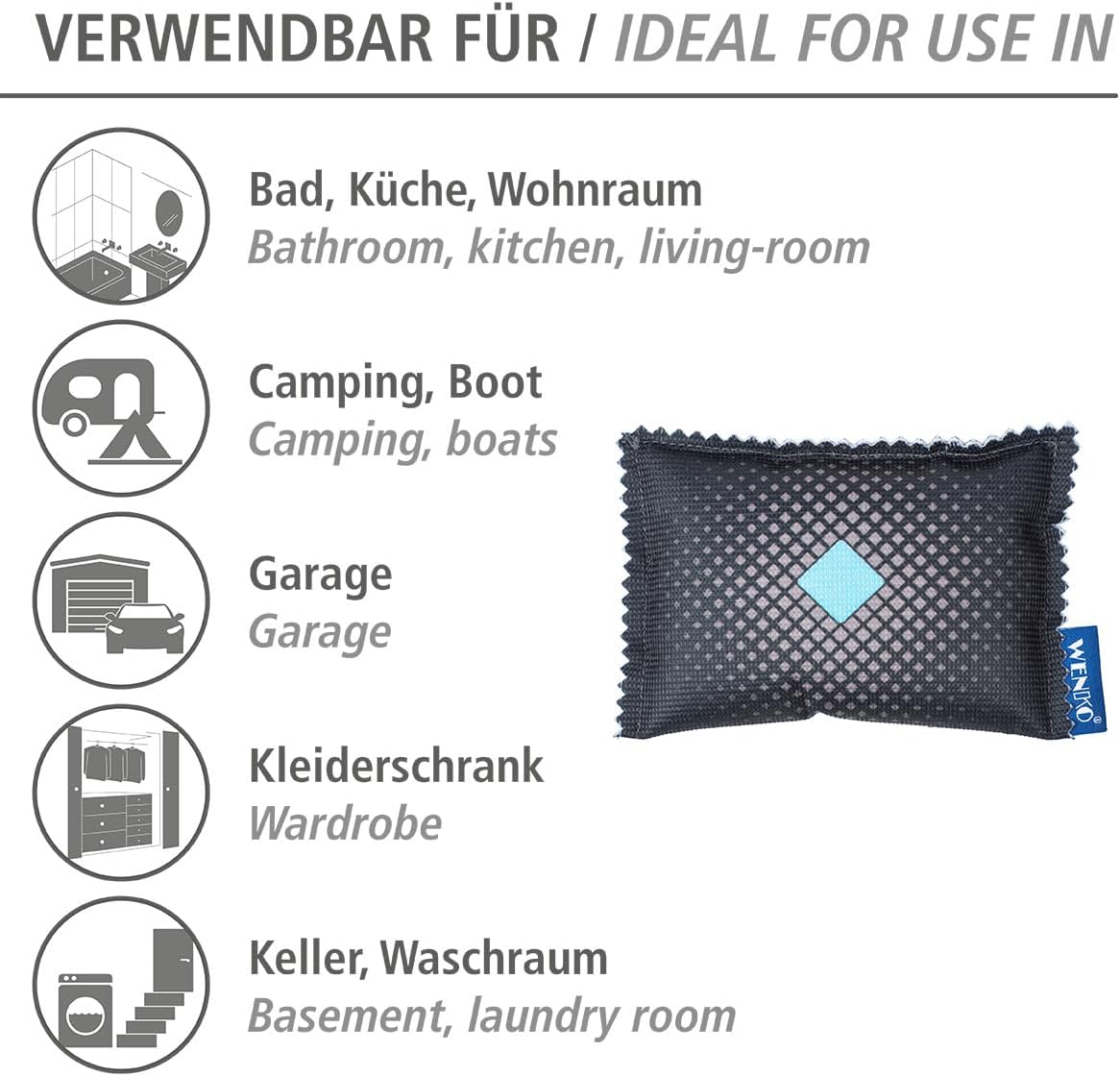• Ефективен влагоабсорбатор в комплект от 2 броя, идеален за автомобили, каравани, лодки, гаражи и мазета.
