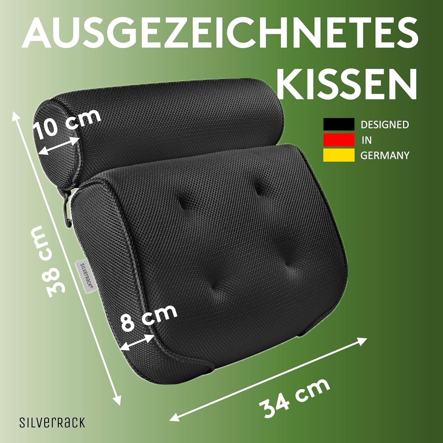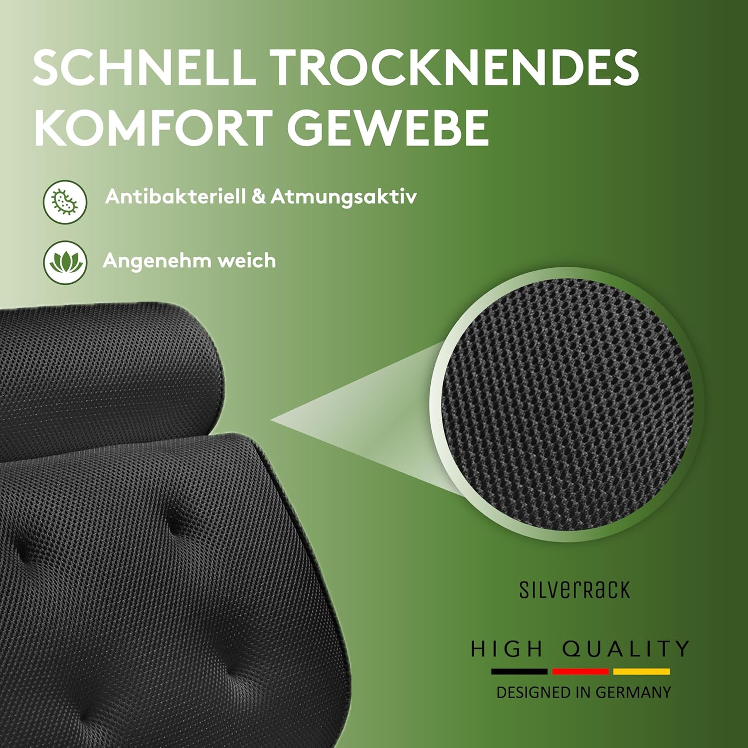 • Висококачествени материали – изработена от мека, дишаща 3D мрежа, тази възглавница за вана предлага приятна повърхност. Многослойният пълнеж осигурява допълнителен комфорт.