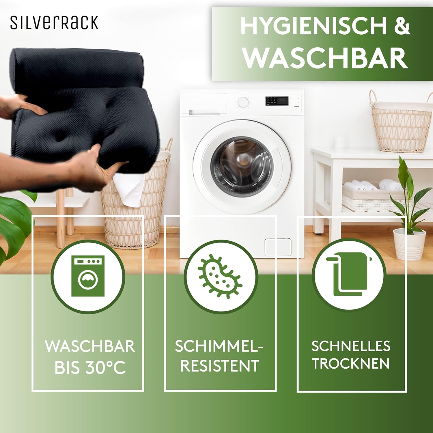 • Хигиенично чиста: възглавницата за вана може да се пере до 30 градуса по Целзий, устойчива е на мухъл и съхне бързо благодарение на удобната материя. Включва кукички за лесно сушене.