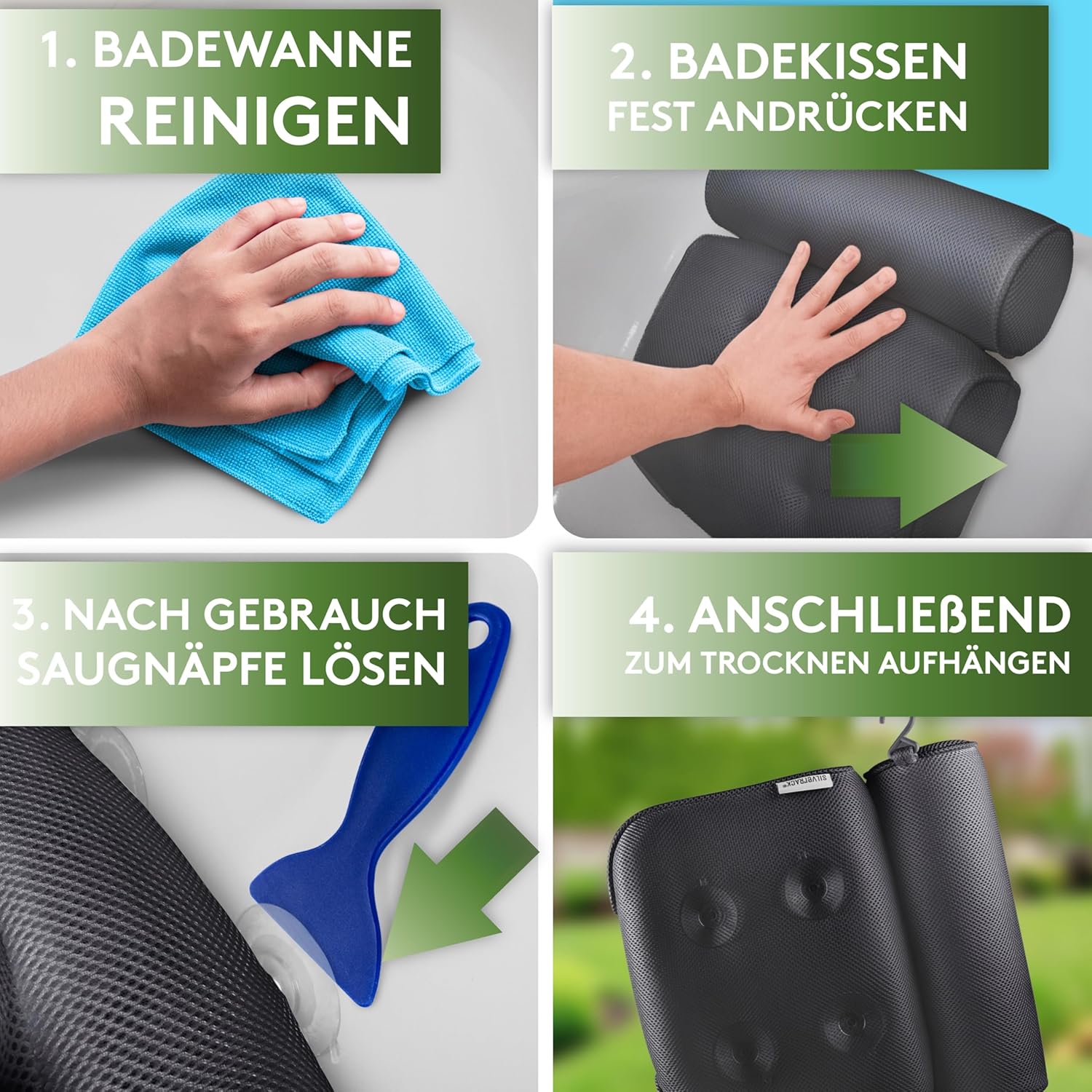 • Максимален комфорт – Нашата възглавница за вана осигурява ергономична опора за главата и врата, така че можете да се насладите на всяка вана като на релаксиращо спа преживяване. Идеална за дълги вечери във ваната.