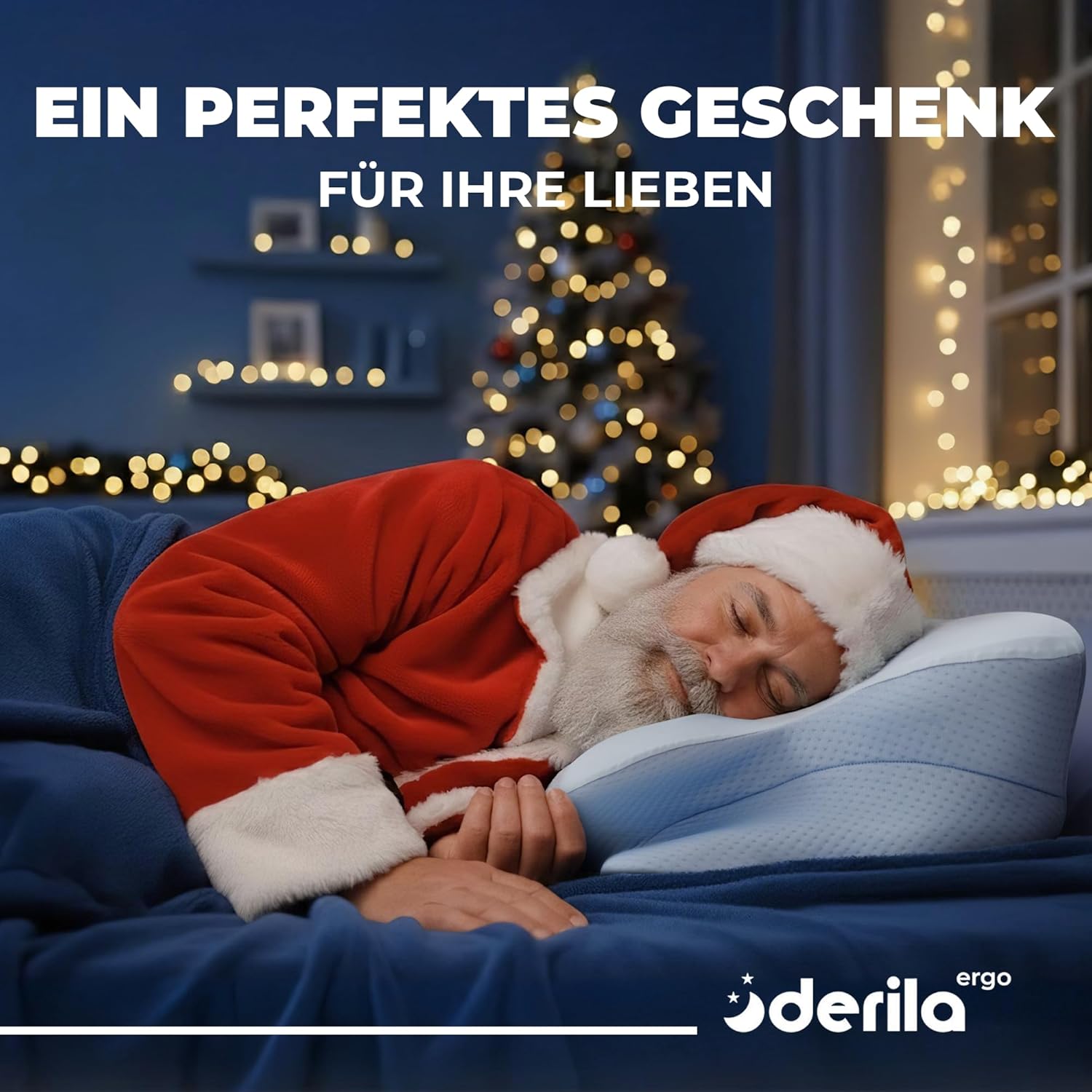 • Възглавницата от мемори пяна Derila ERGO насърчава по-доброто дишане, като допринася за правилното подравняване на главата и врата. Ергономичният ѝ дизайн може да помогне за създаването на по-спокойна и тиха среда за сън.