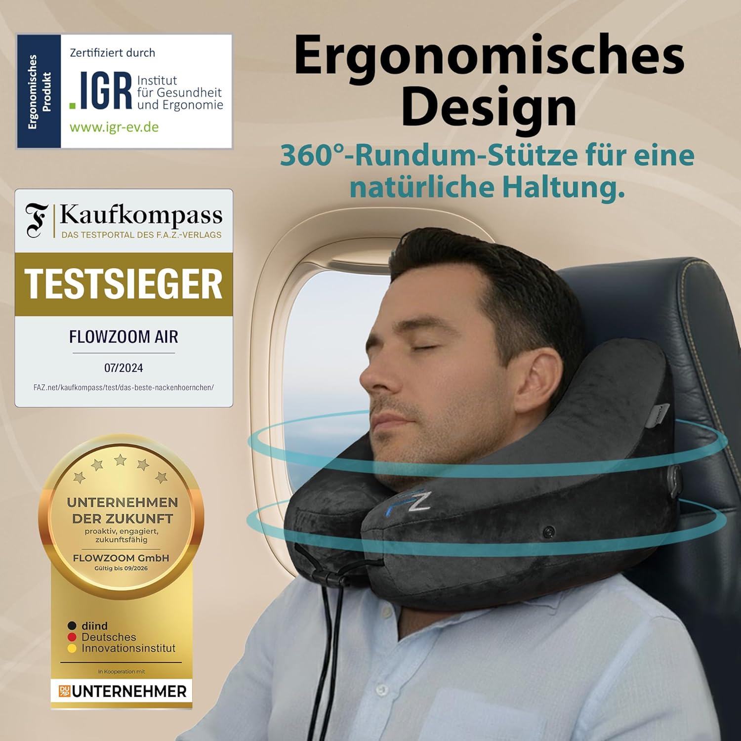 • Компактна и лека: Надува се и се изпуска за секунди, с тегло само 240 г. Немските иновации се съчетават с издръжливи и леки материали, за да осигурят несравним комфорт в малки размери. Възглавницата за врата за полет се предлага в специална подаръчна кутия и чанта за пътуване.