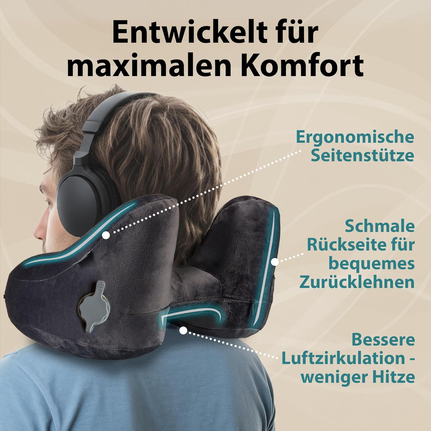 • 360° поддръжка за дълги пътувания: Нашата ергономично проектирана, надуваема възглавница за самолет следва извивките ви за отлична опора за брадичката и страничната част. Идеална за дълги полети и пътувания с кола!