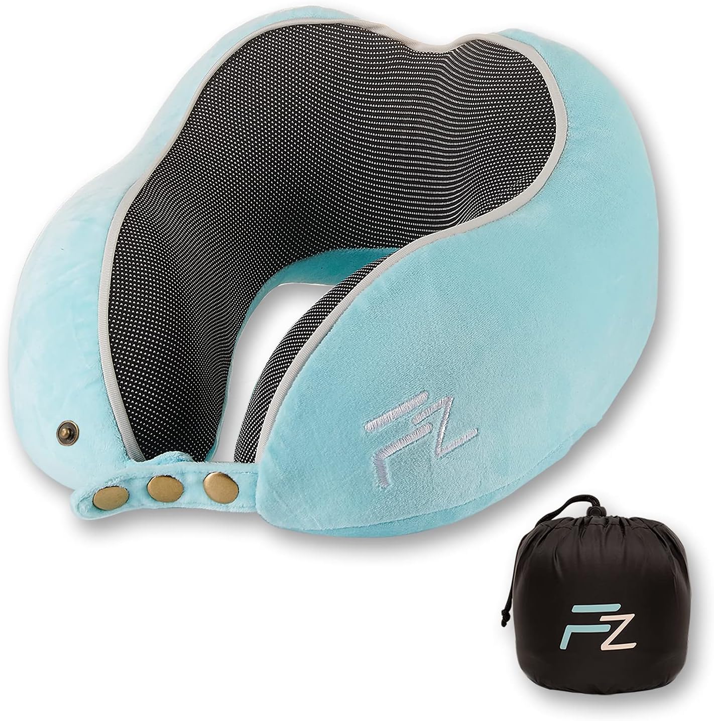 Възглавница за врата FLOWZOOM за деца от 6 години, възглавница за пътуване, възглавница за самолет и кола, изработена от мемори пяна с изключително мек и перещ се калъф, удобна, синя – размер M