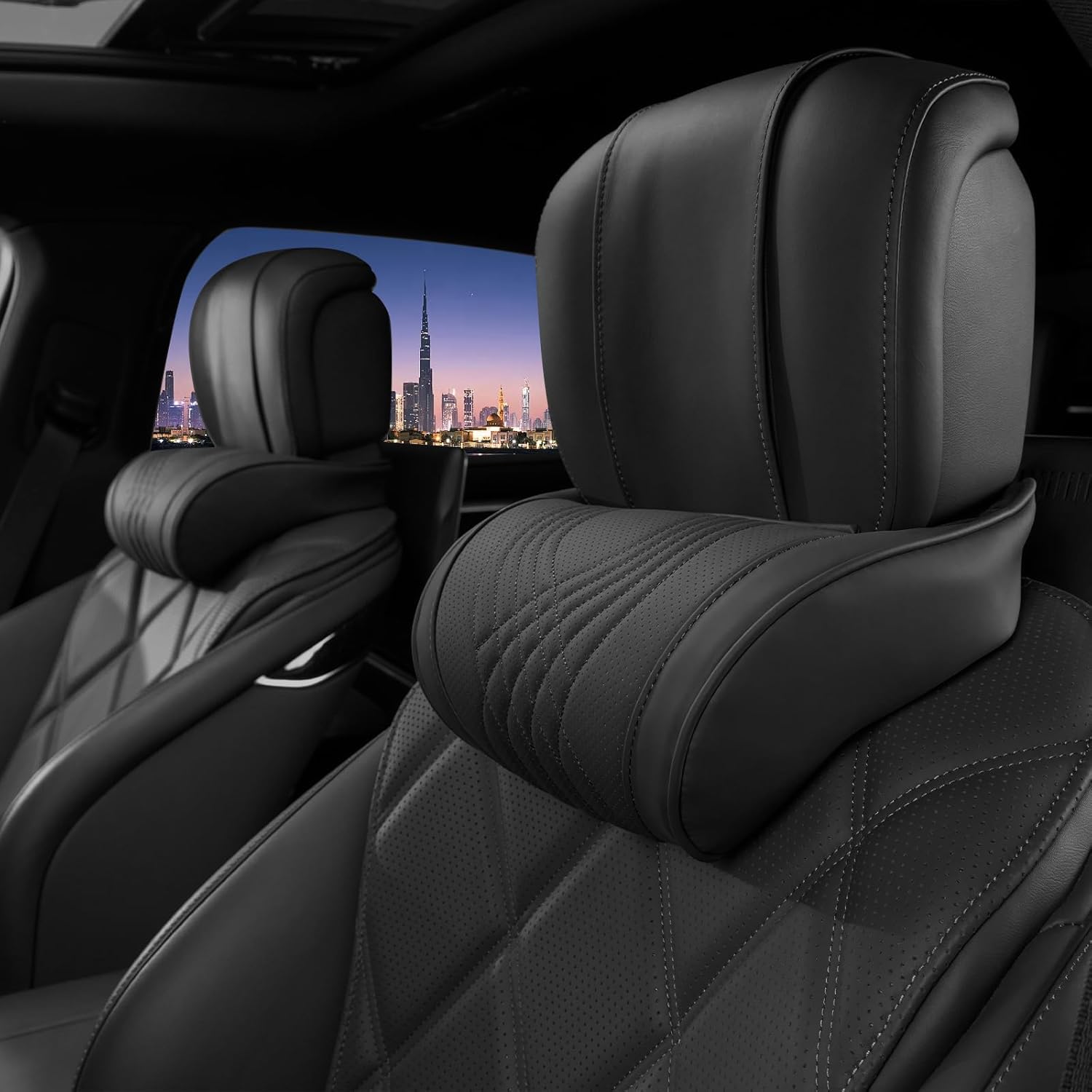 • Тази луксозна облегалка за глава за кола, изработена от висококачествена кожа Nappa, не само добавя елегантност към интериора на вашия автомобил, но също така гарантира издръжливост и ежедневен комфорт.