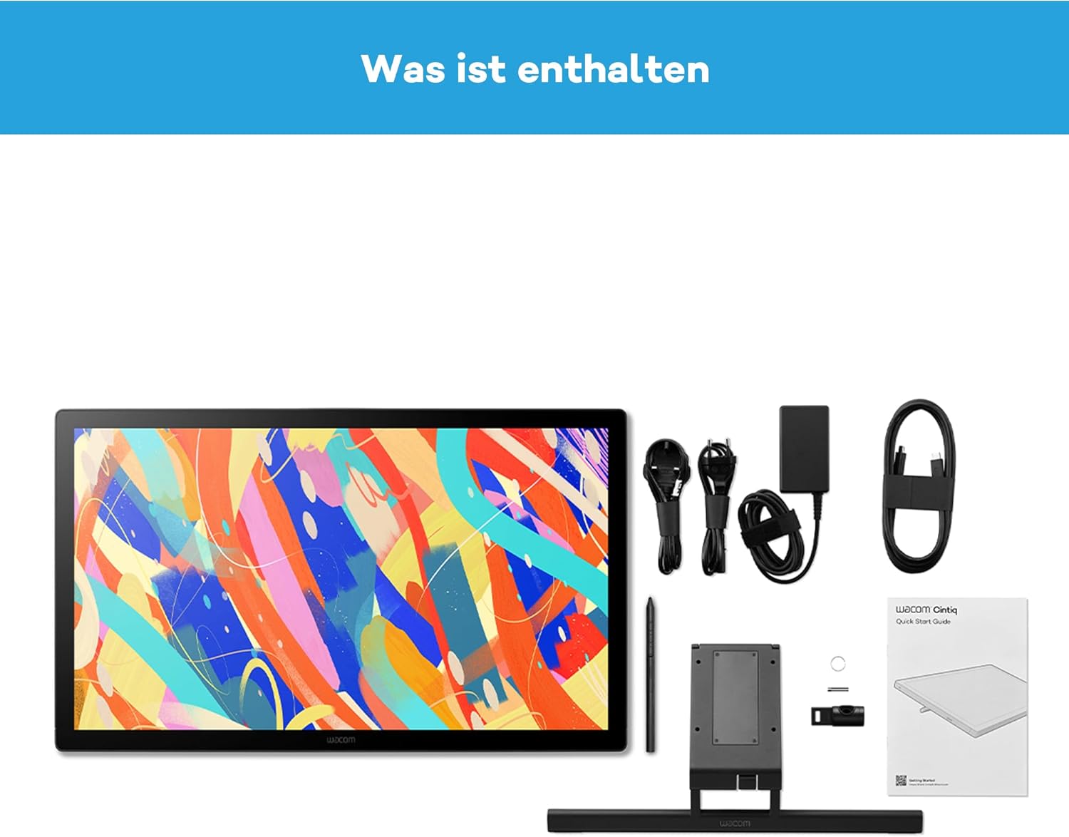 Kabel verbinden dein Display mit dem Computer und übertragen Video, Stiftdaten und Strom. Beim Wacom Cintiq 16 übernimmt das mitgelieferte USB-C-Kabel alles – vorausgesetzt, dein Rechner hat USB-C mit DisplayPort Alt Mode oder Thunderbolt 3/4. Fehlt ein passender Anschluss, brauchst du eventuell zusätzliche Kabel wie HDMI auf Mini-HDMI (Video) und USB-A auf USB-C (Stiftdaten).