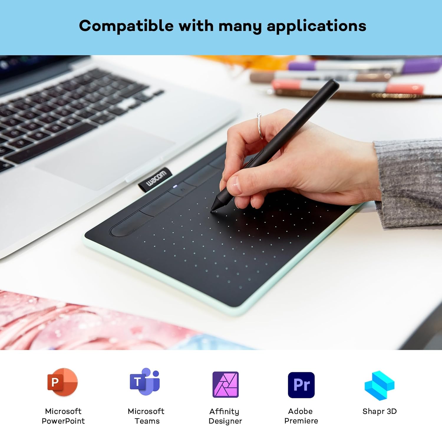 • Wacom Intuos S е графичен таблет, идеален за рисуване, живопис и редактиране на снимки.