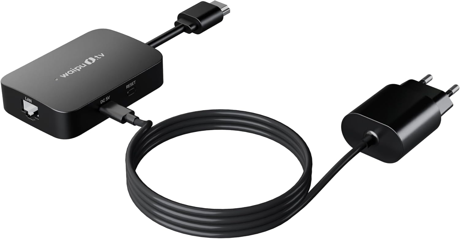 waipu.tv Стик (2-ро поколение) | Включва дистанционно управление с осветление | Телевизор през Wi-Fi | LAN | HDMI | 4K | HDR10+ | Dolby Atmos | 3-месечен ваучер за 300 телевизионни канала и 40 000 филма и сериала