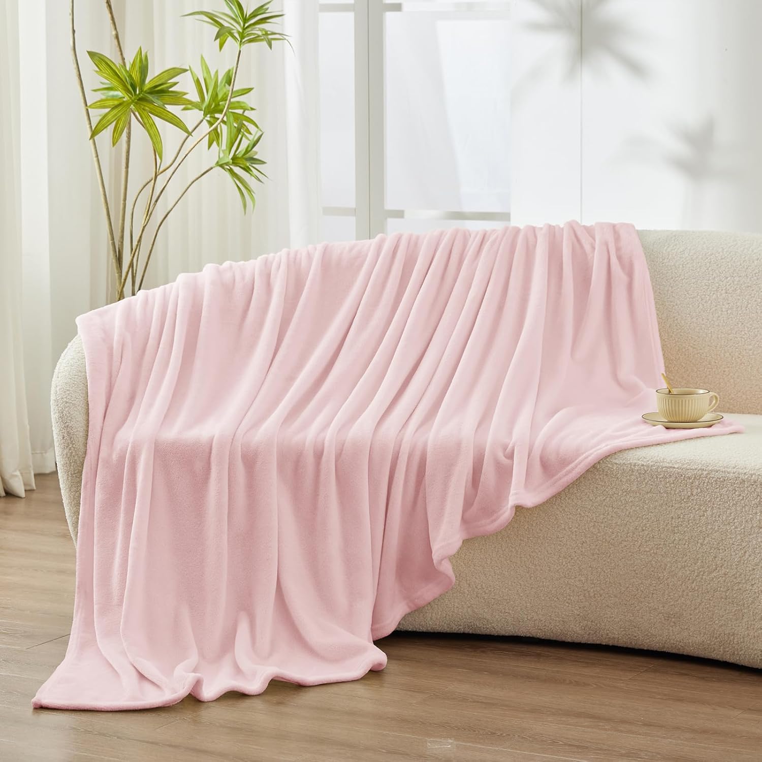 wavve Cuddly, Пухкаво одеяло, Голямо поларено одеяло, Меко покривало за диван, Топло одеяло за диван, като покривало за диван, покривало за легло или покривало за легло, 230 x 270 см, Розово
