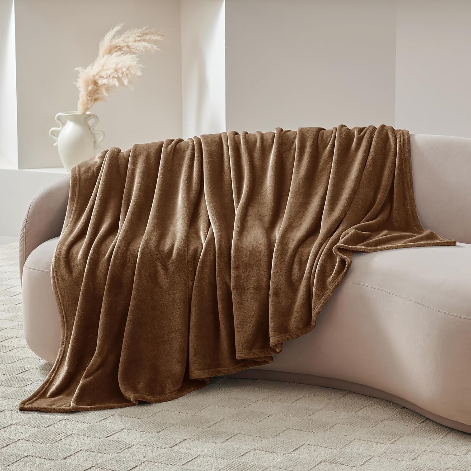 wavve Cuddly, Пухкаво одеяло, Поларено одеяло, Одеяло за диван, Малко домашно одеяло, Одеяло за диван, Меко, Леко покривало за диван, 130 x 150 см, Кафяво