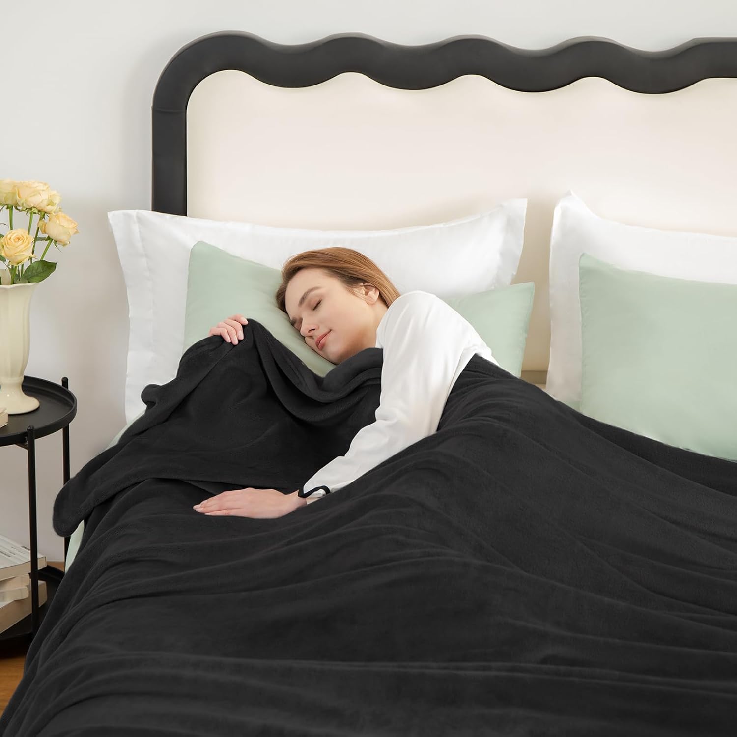 wavve Cuddly, Пухкаво одеяло, Поларено одеяло, Одеяло за диван, Меко лятно одеяло за дома, Одеяло за диван, XXL, Леко, 220 x 240 см, Черно