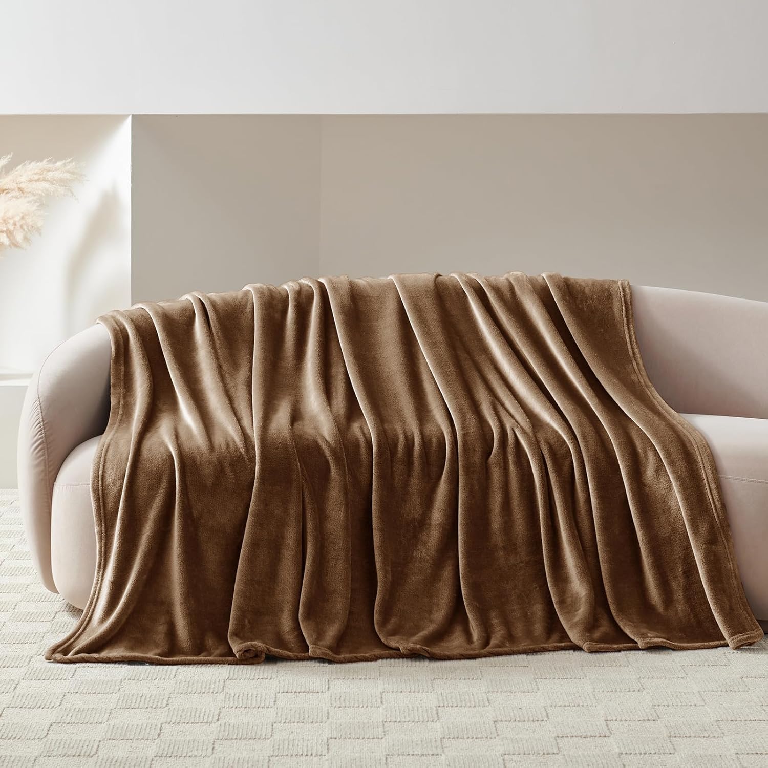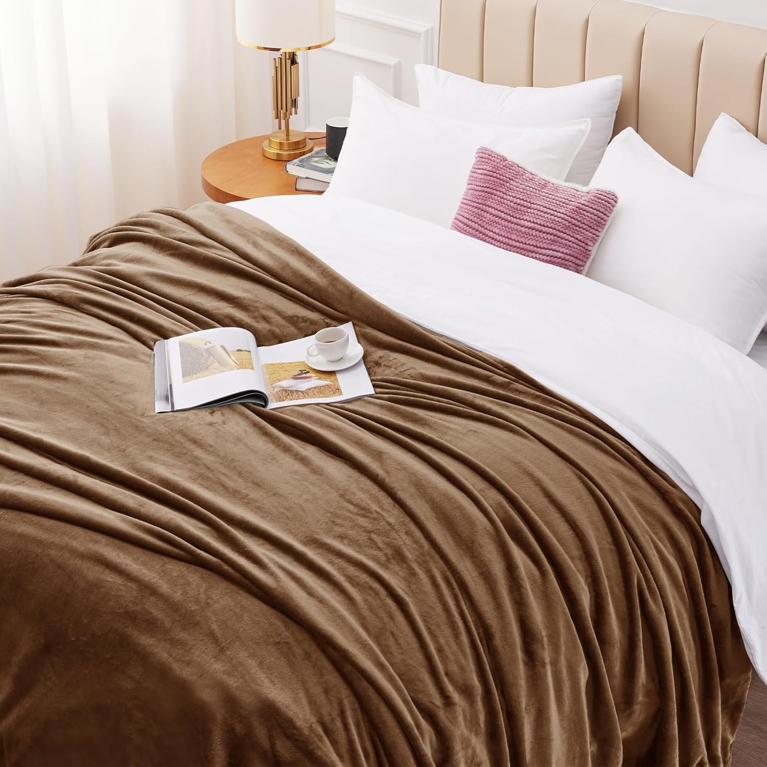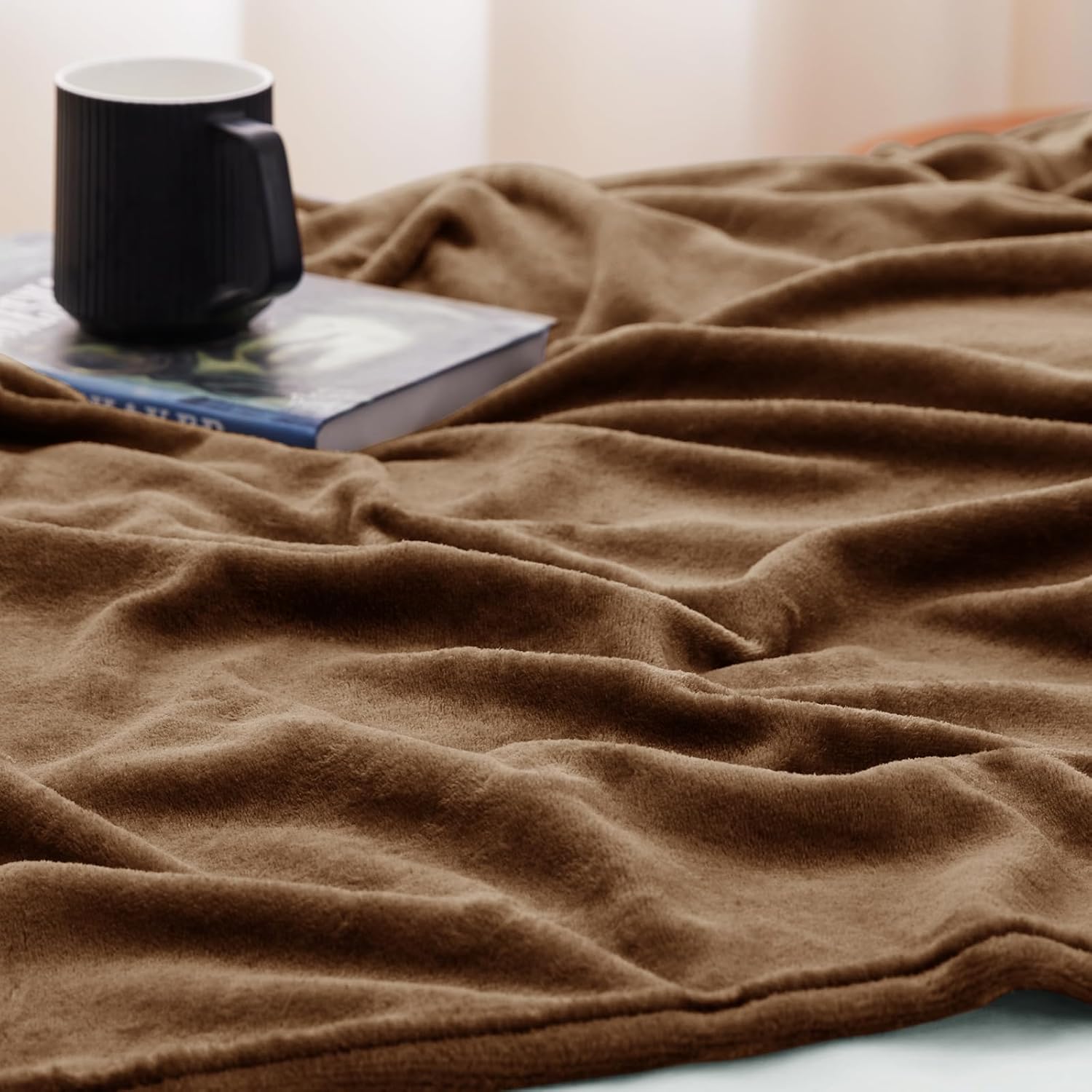 wavve Cuddly, Пухкаво одеяло, Поларено одеяло, Одеяло за диван, Меко лятно одеяло за дома, Одеяло за диван, XXL, Леко, 220 x 240 см, Кафяво