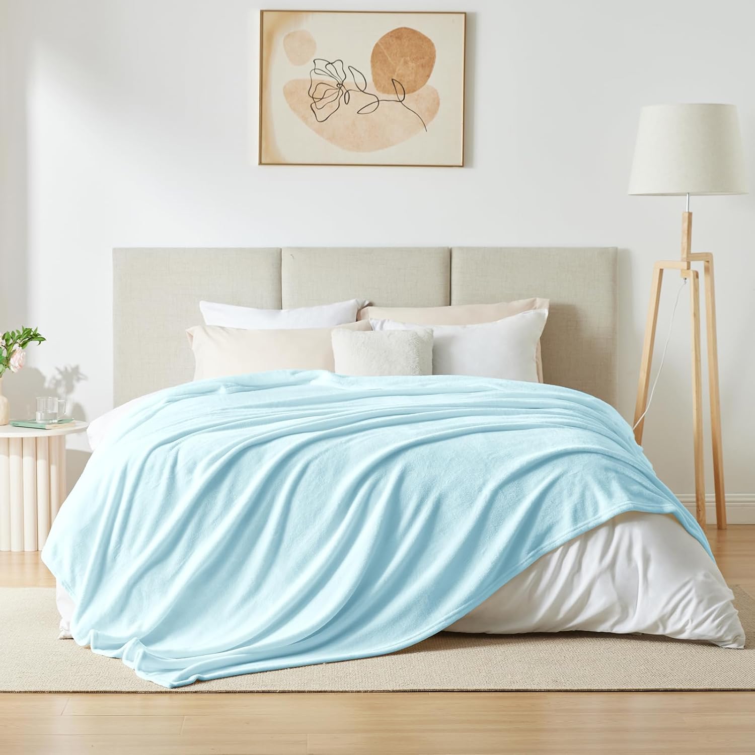 wavve Cuddly, Пухкаво одеяло, Поларено одеяло, Одеяло за диван, Одеяло за дома, Одеяло за диван, Леко, Голямо одеяло за диван, Меко, 230 x 270 см, Светлосиньо