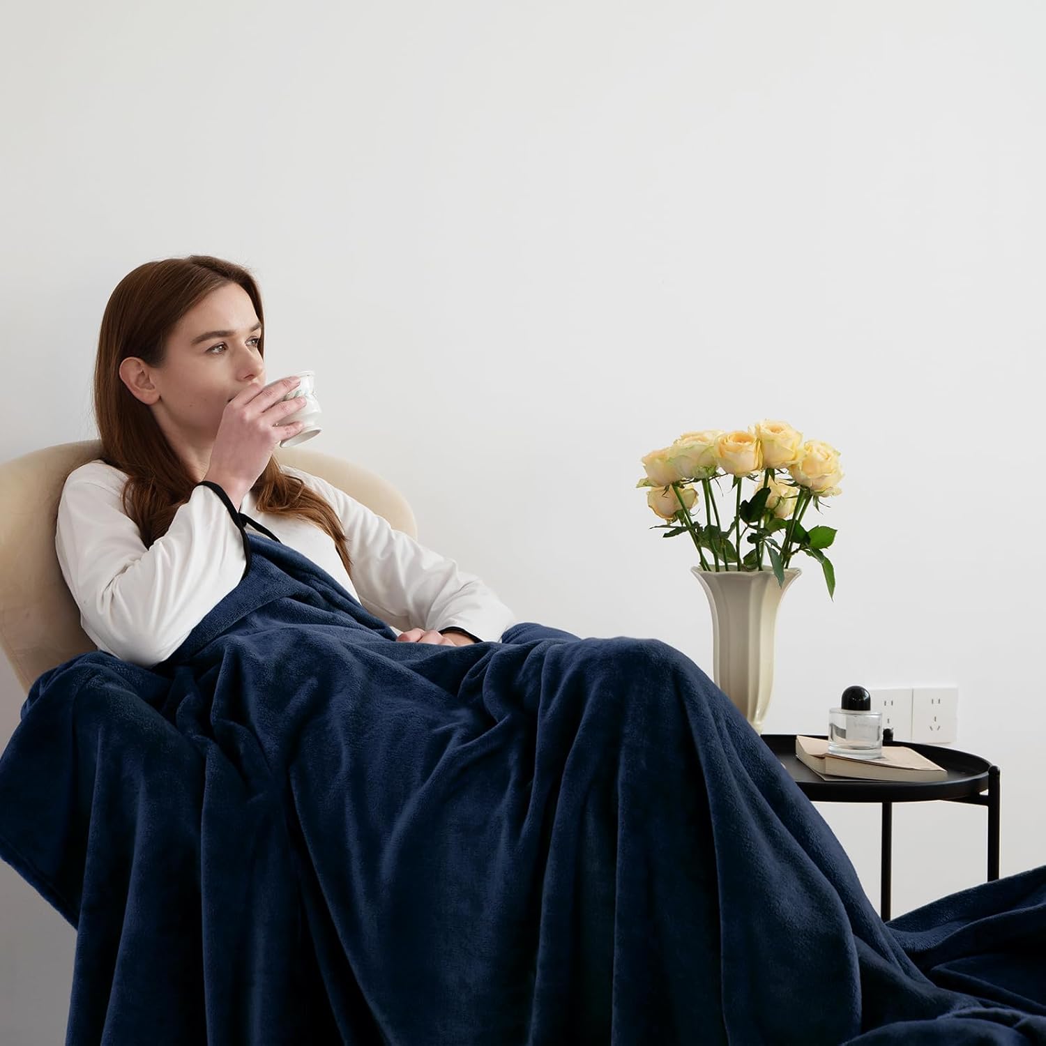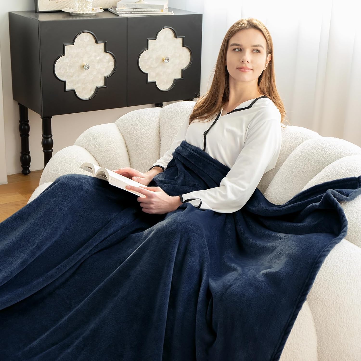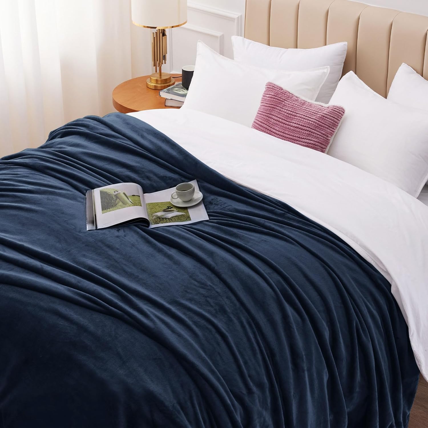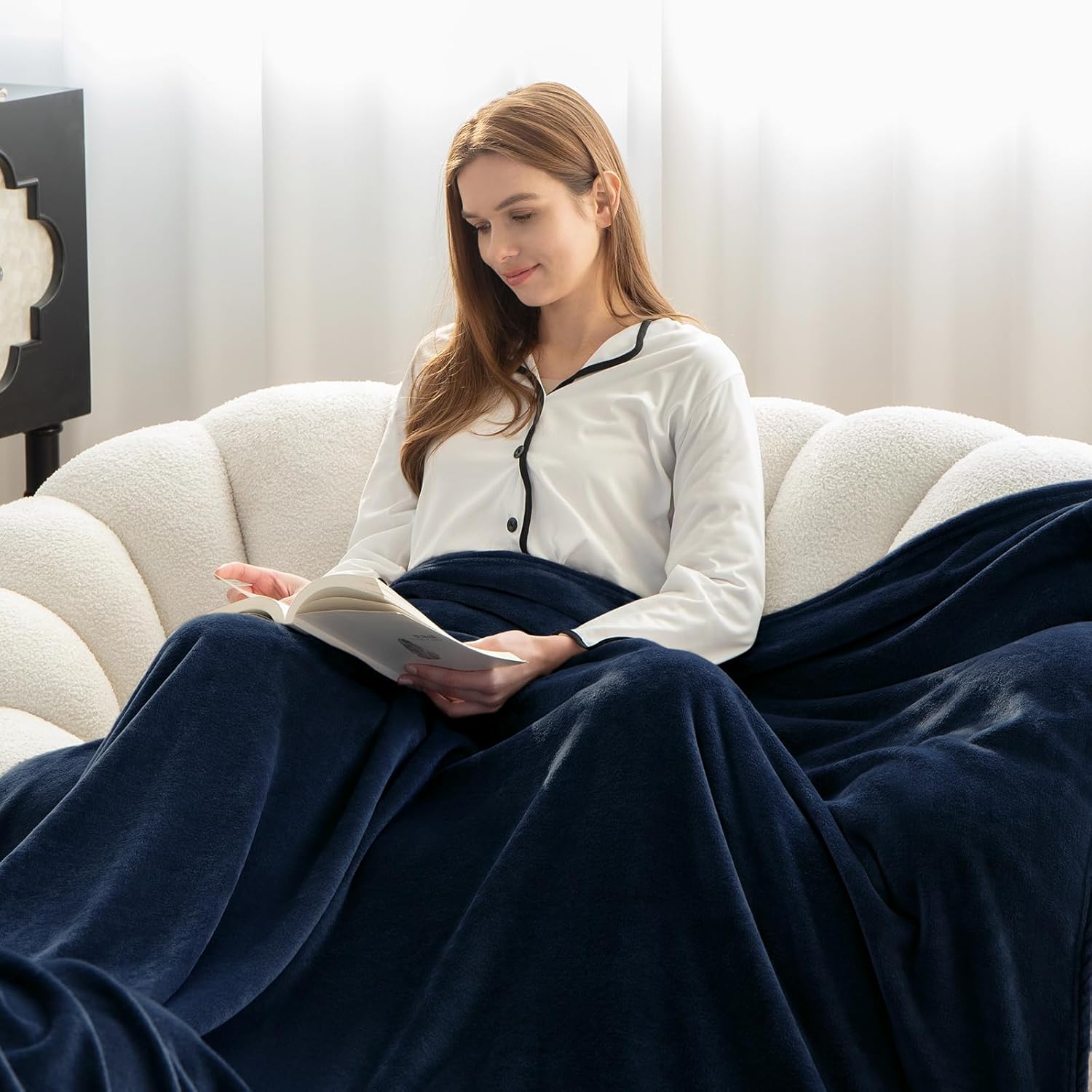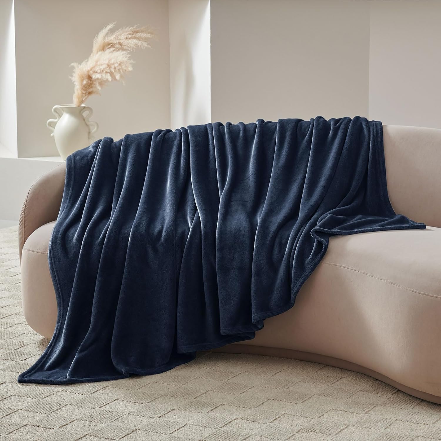 WAVVE Пухкаво одеяло, Комплект от 2 поларени одеяла - Комплект от 2 одеяла за диван, 150 x 200 см, Топло одеяло за диван, Тъмносиньо одеяло, Меко покривало за диван, XL