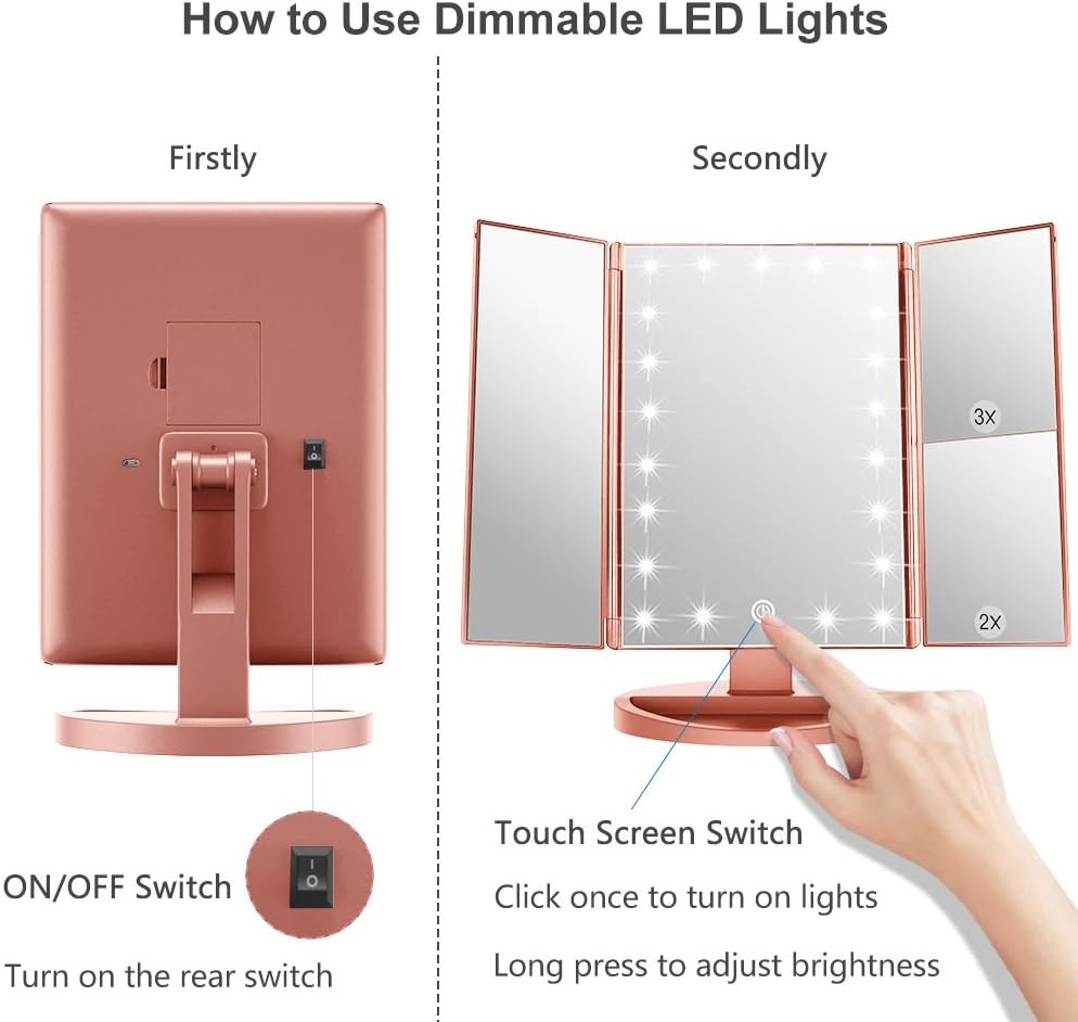 Огледалото има 3 панела с 1X, 2X, 3X увеличение и широк ъгъл, за да можете да видите ясно чертите на лицето си.