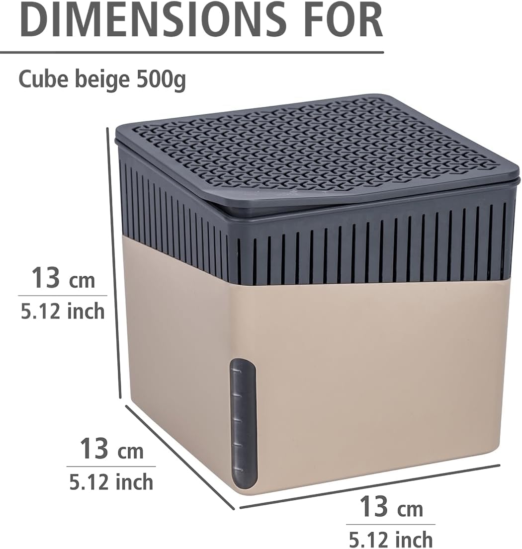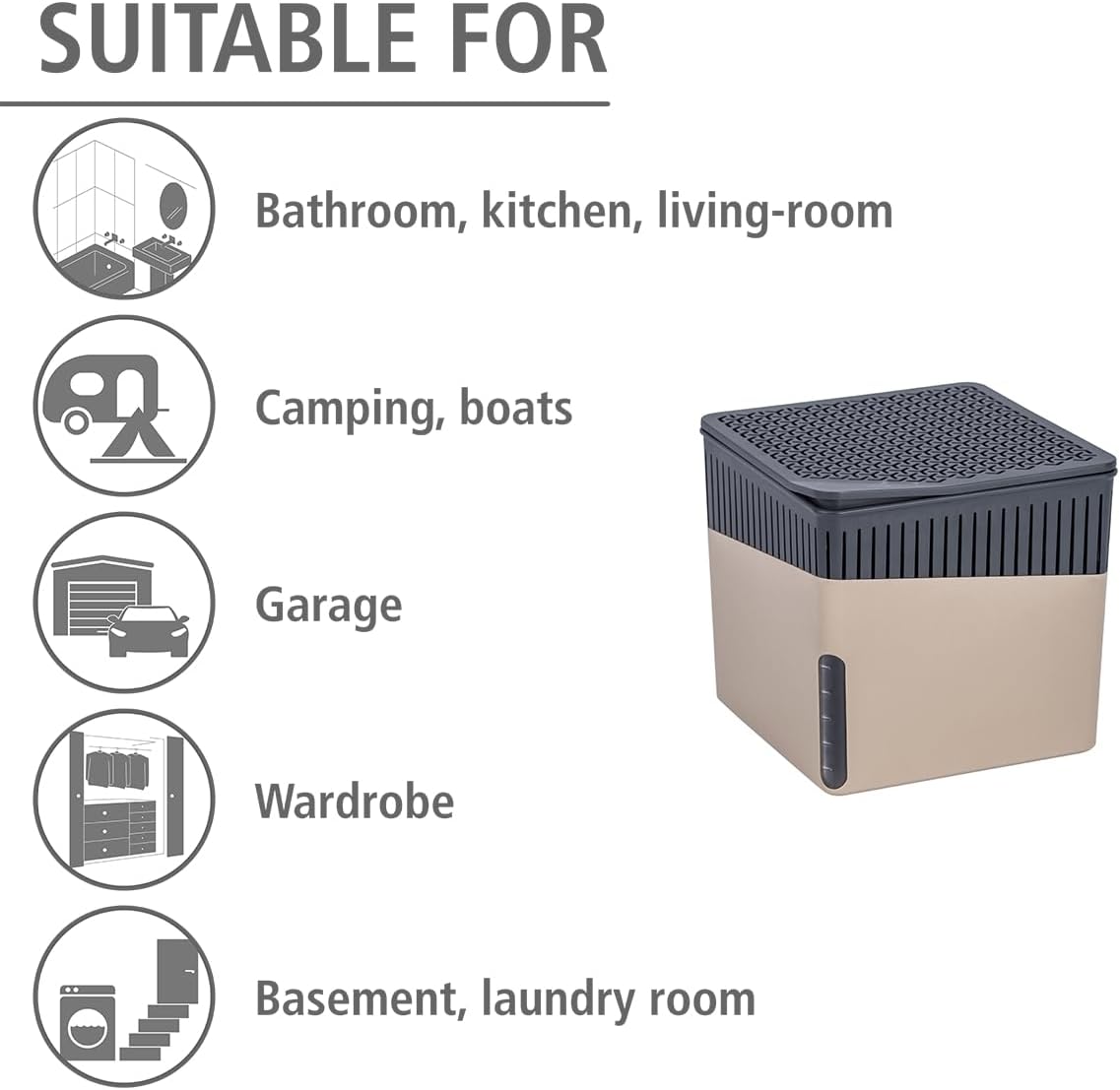 Дизайнерският куб за обезвлажнител от Wenko осигурява по-малко влага и по-приятен климат. Модерният обезвлажнител се интегрира елегантно във всяка стая и създава визуален акцент с модерна кубична форма.