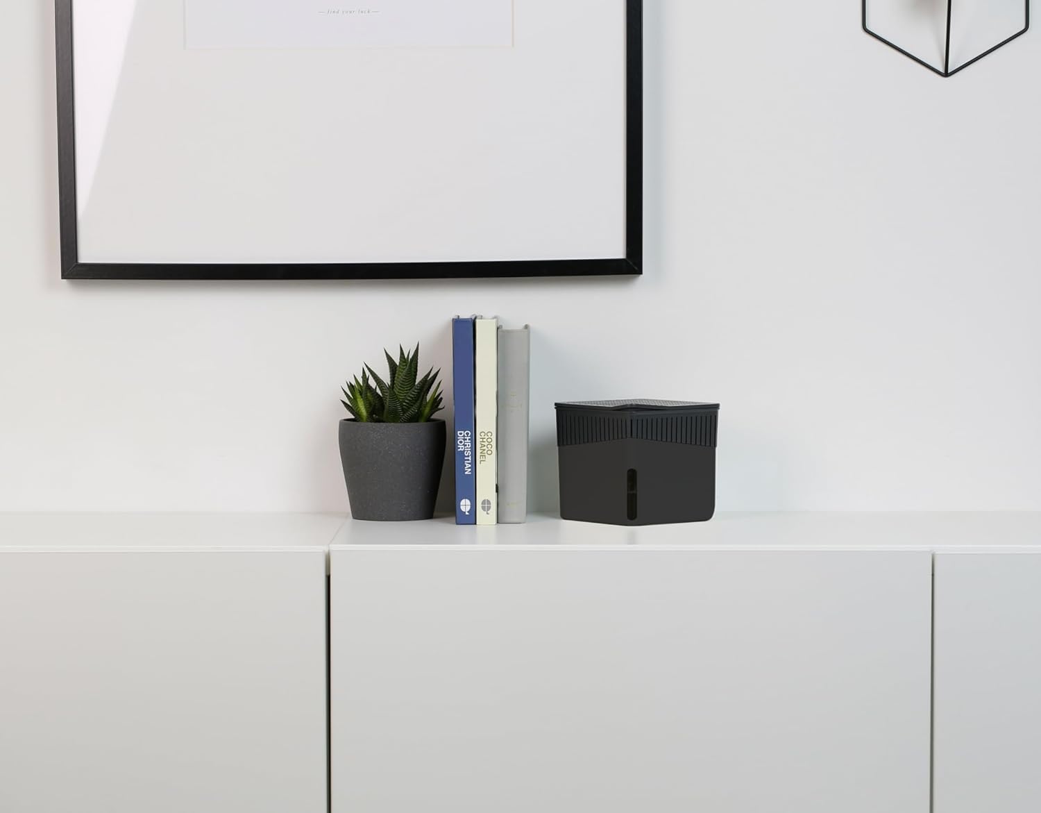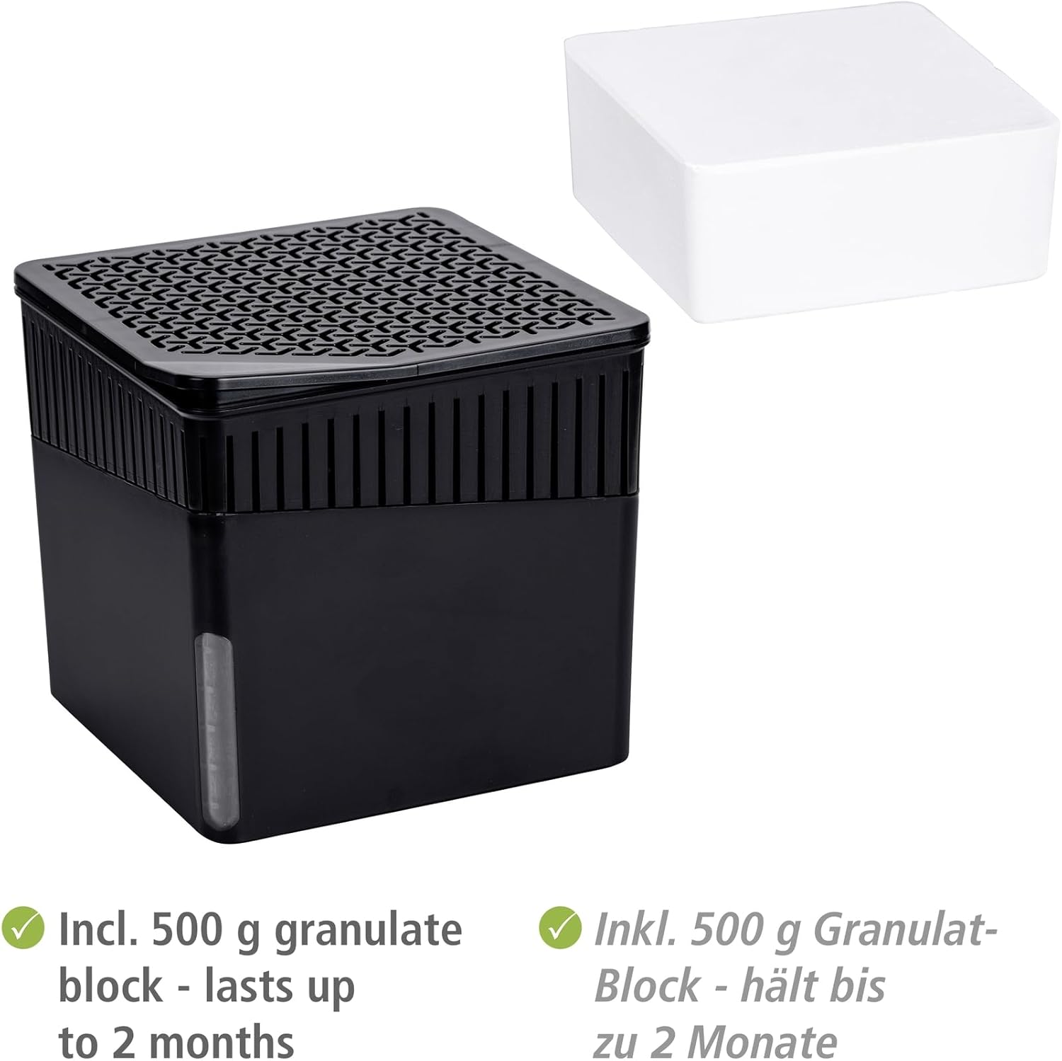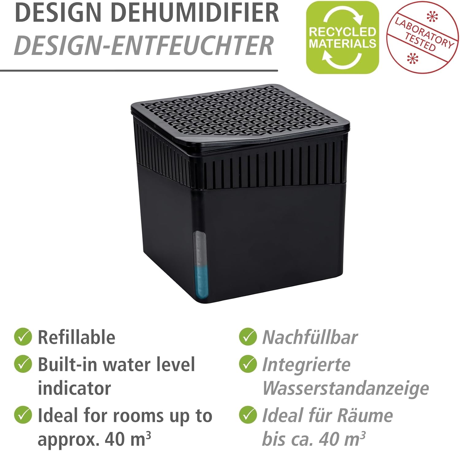 Дизайнерският куб за обезвлажнител от Wenko осигурява по-малко влага и по-приятен климат. Модерният обезвлажнител се интегрира елегантно във всяка стая и създава визуален акцент с модерна кубична форма.