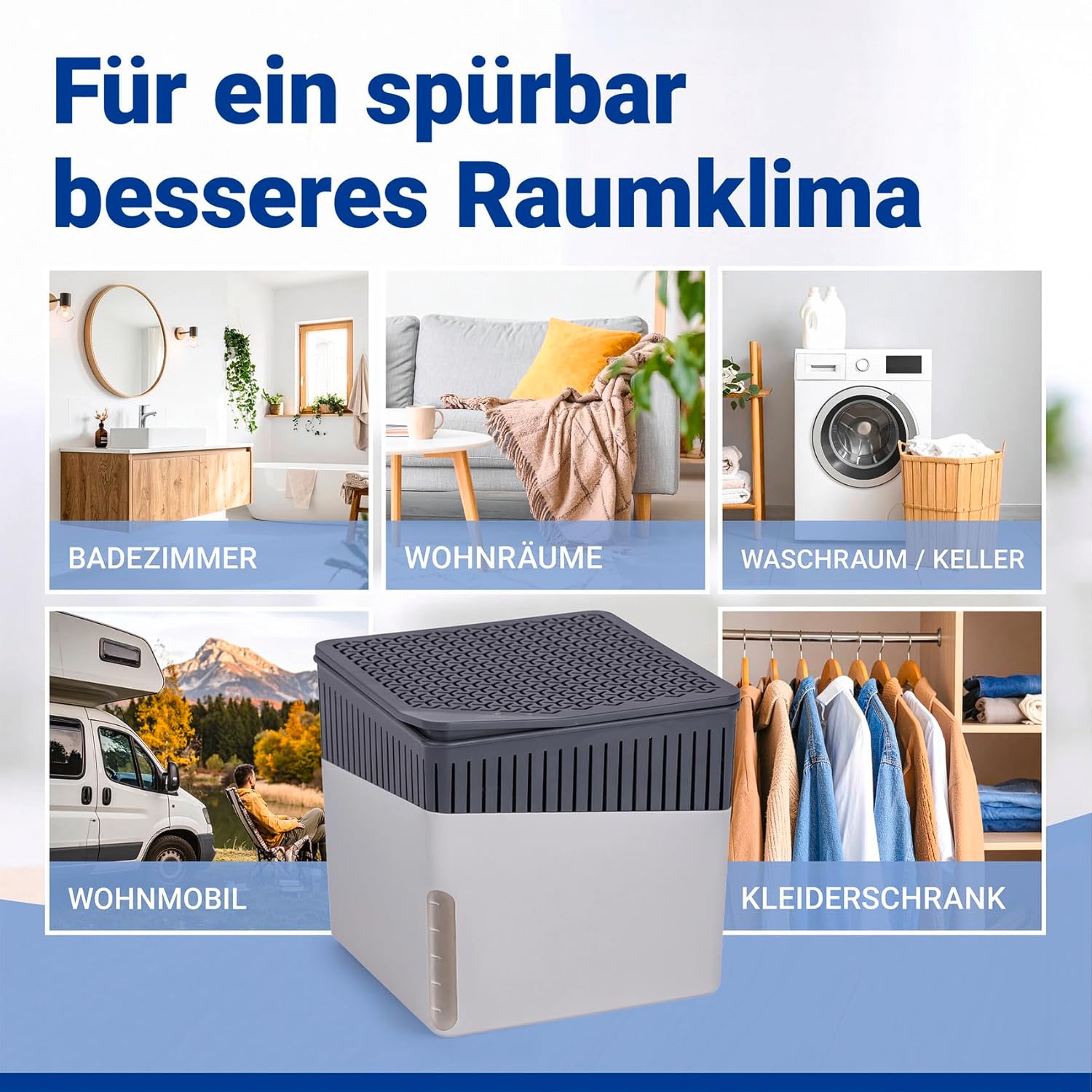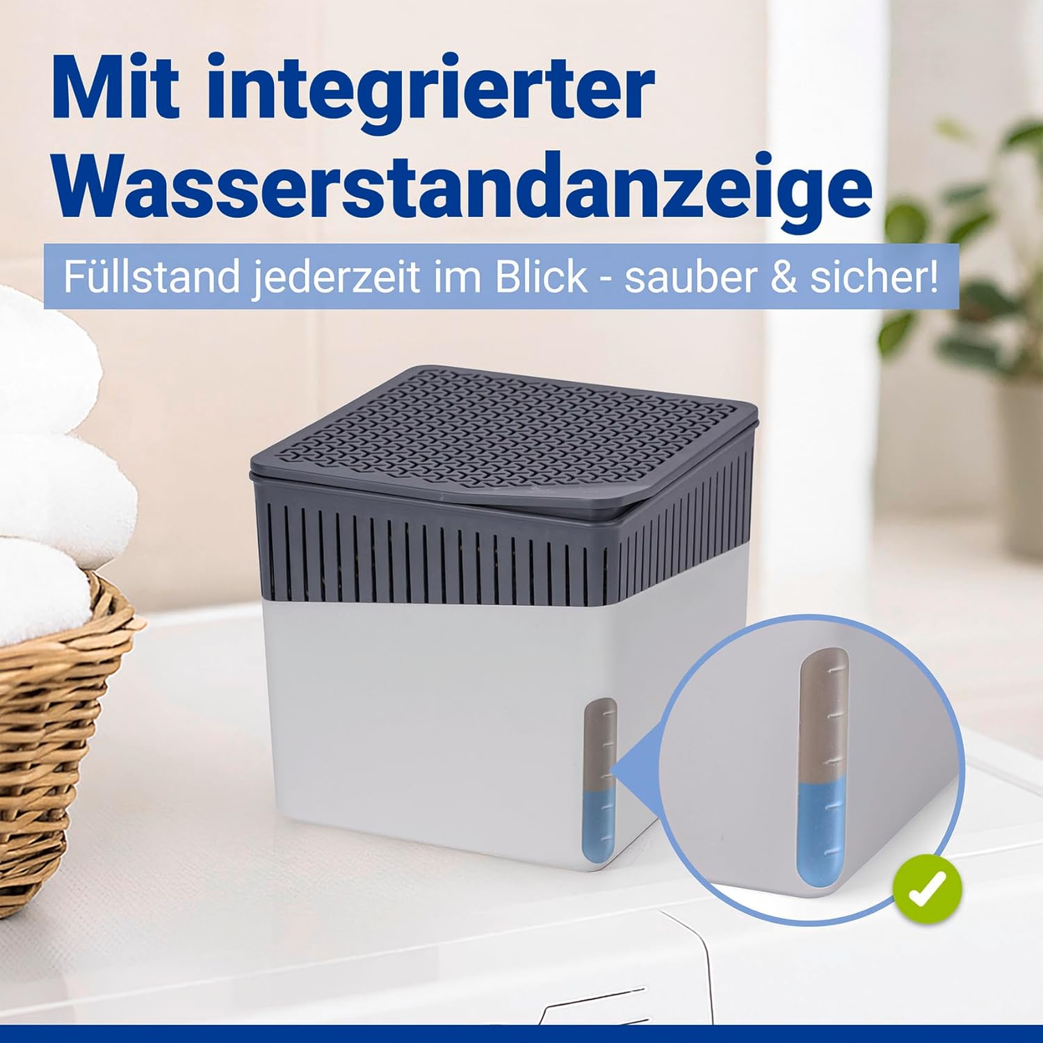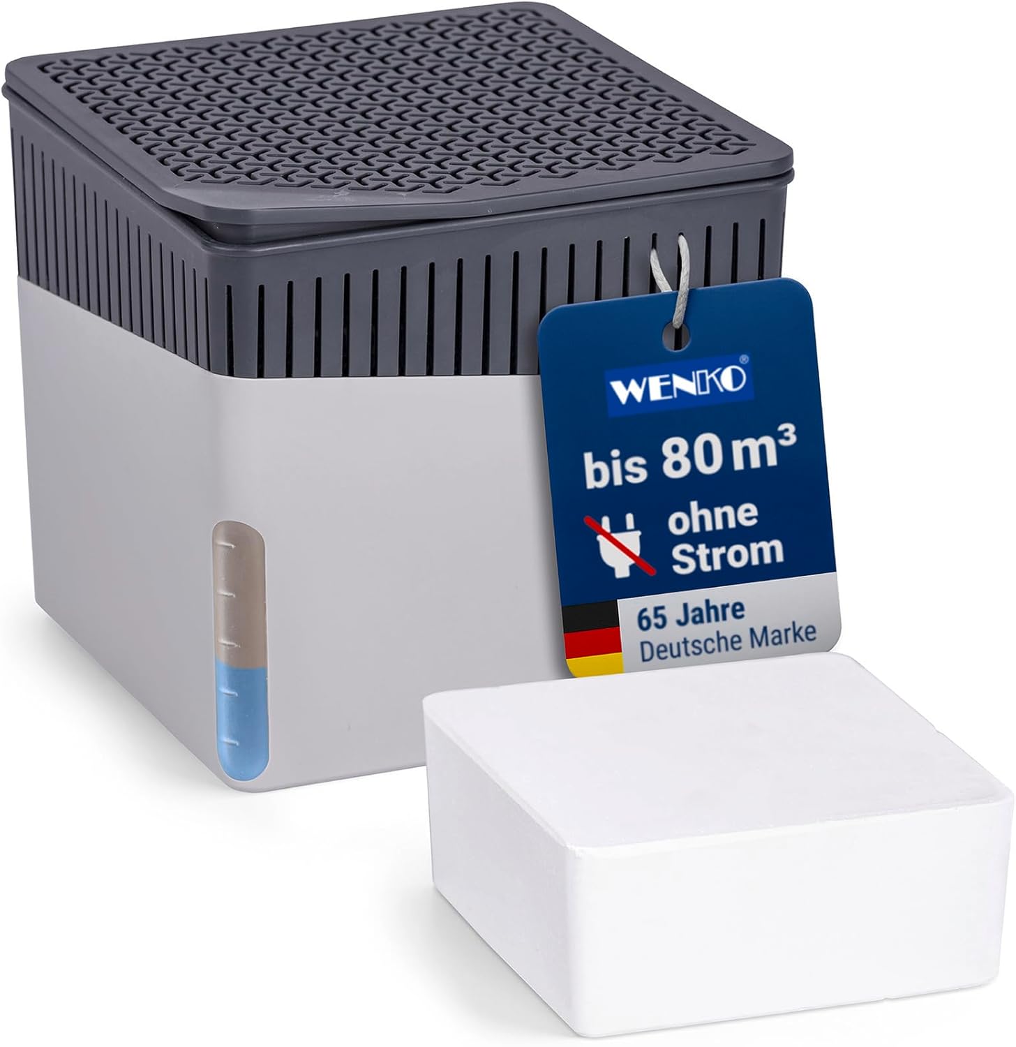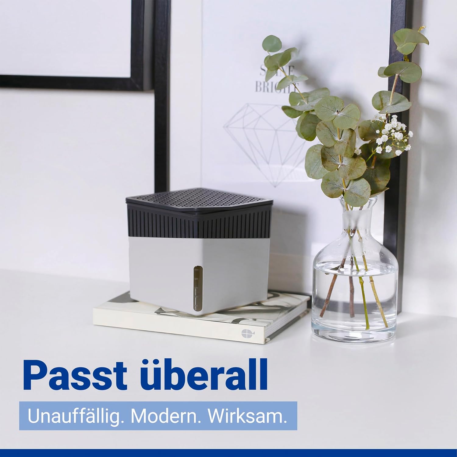 Дизайнерският куб за обезвлажнител от Wenko осигурява по-малко влага и по-приятен климат. Модерният обезвлажнител се интегрира елегантно във всяка стая и създава визуален акцент с модерна кубична форма.