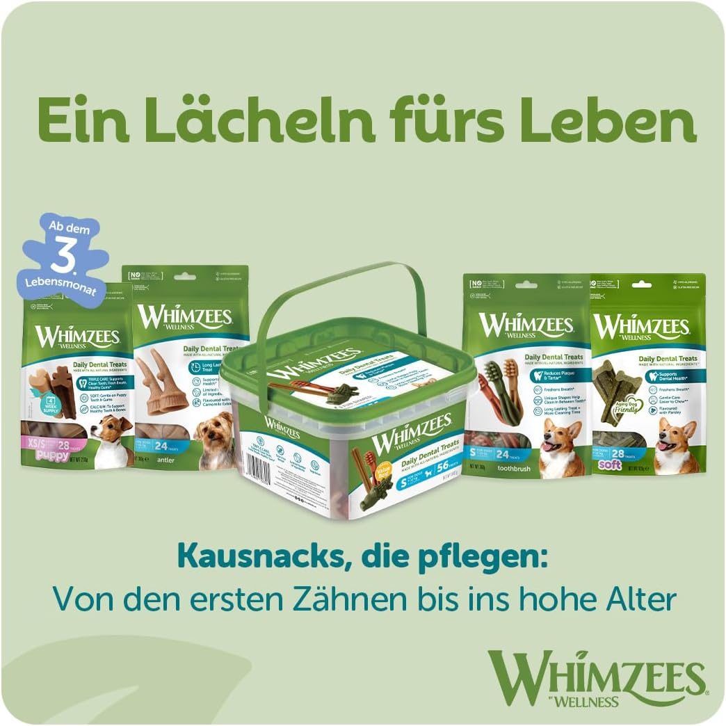 • Whimzees предлагат три пъти по-дълго време за дъвчене в сравнение с конкурентните продукти; нашите твърди зъбни пръчици имат твърда структура за дълготрайно удоволствие от дъвченето и ефективна грижа за зъбите.