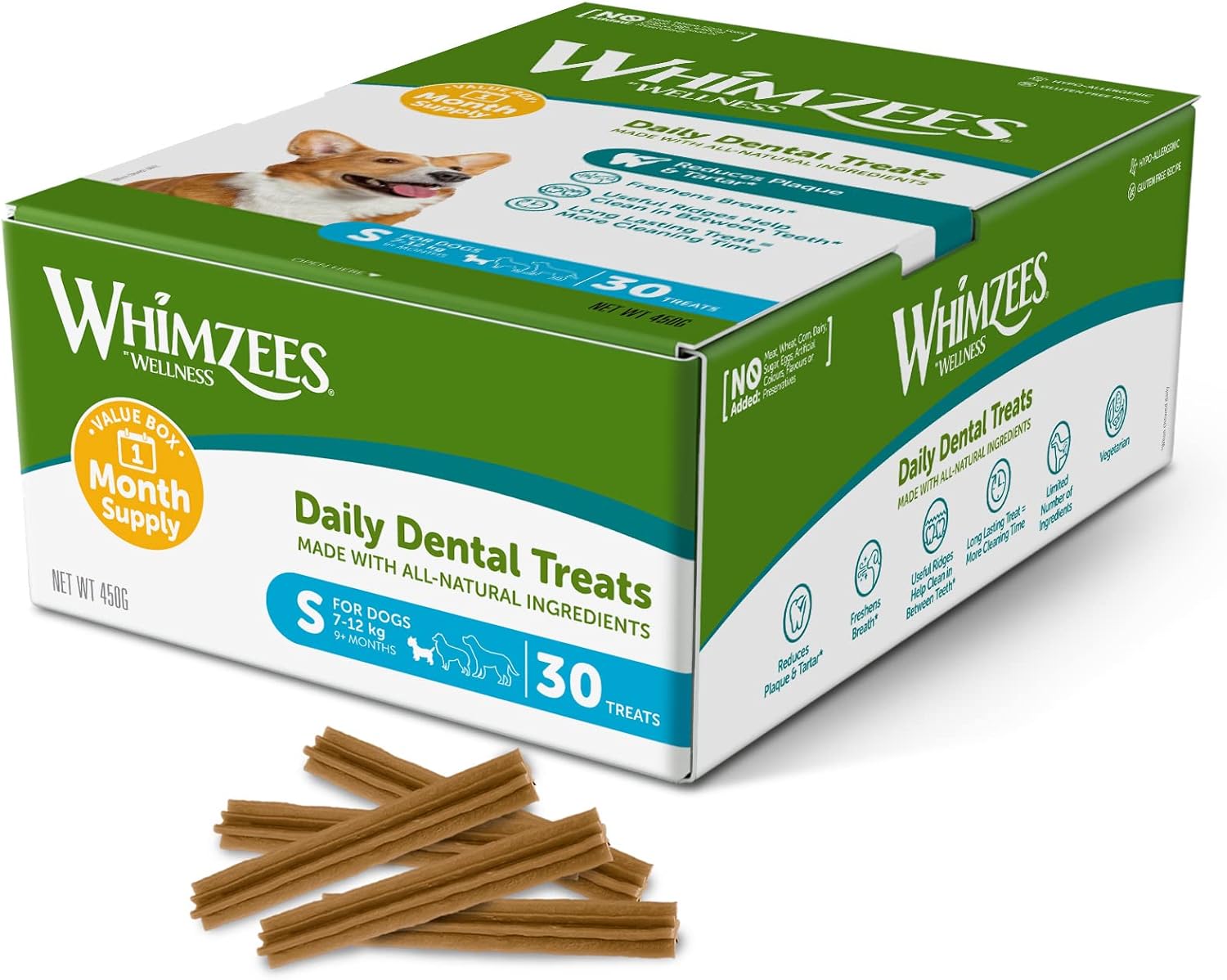 WHIMZEES Stix S, Месечна опаковка, 30 броя – Размер S, Дъвчащи пръчици за малки кучета за грижа за зъбите, без зърнени култури, натурални, без добавена захар