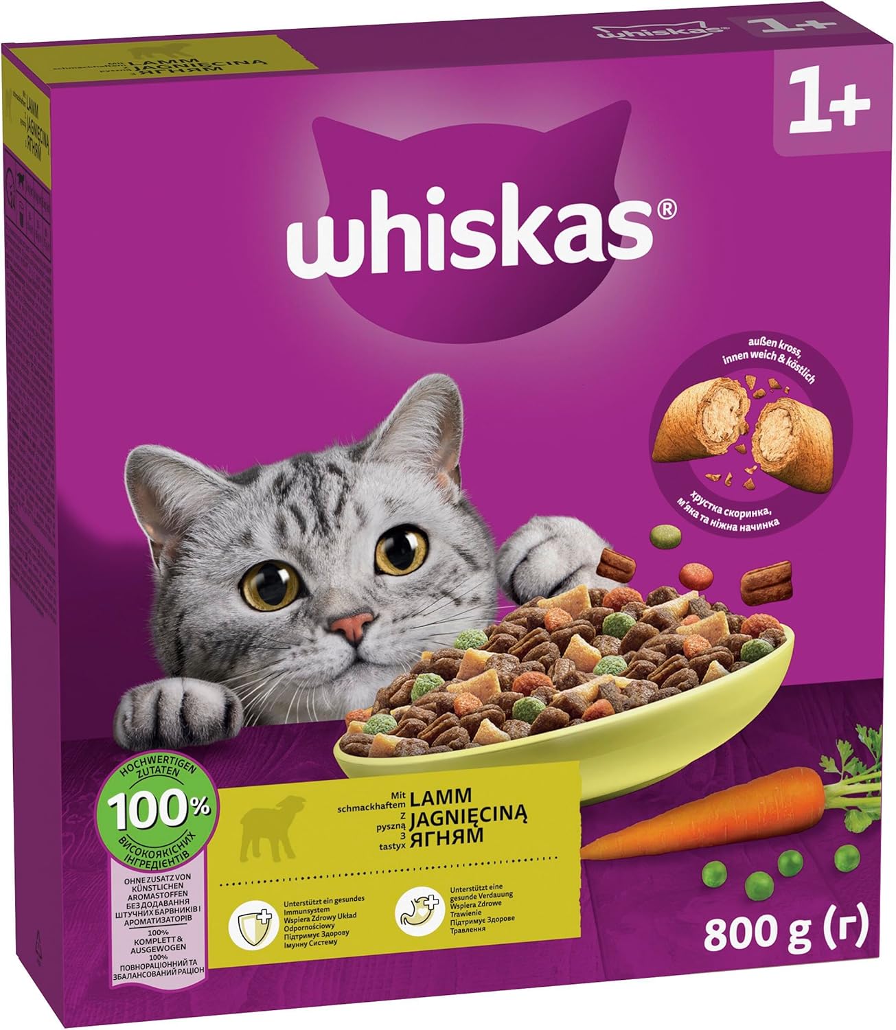WHISKAS суха храна за възрастни котки 5 x 800 г с агнешко месо
