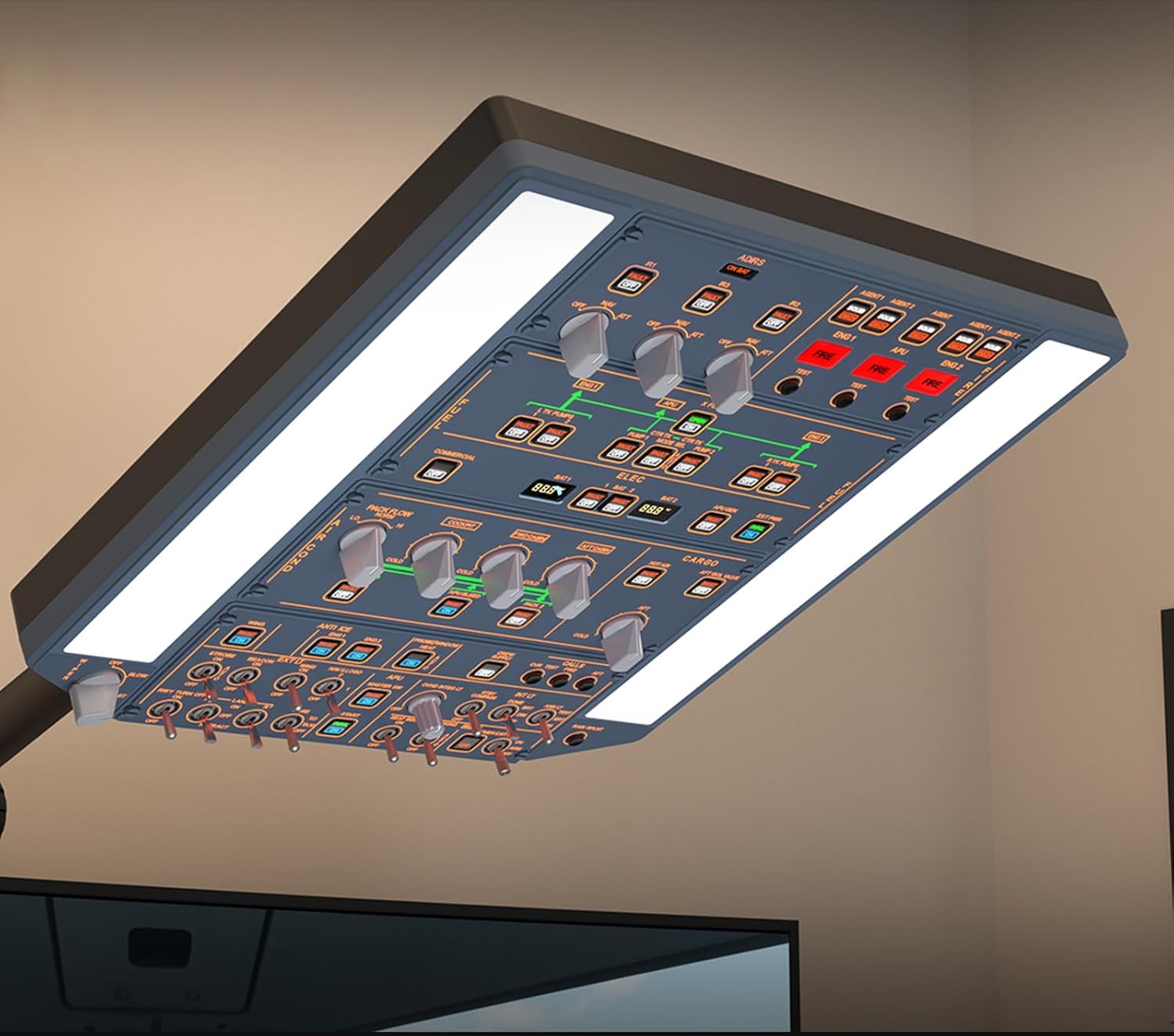 • Имерсивна покривна светлина и индикатор за външна светлина: С регулируема покривна светлина за автентична атмосфера на нощен полет. Панелът се синхронизира със състоянията на външното осветление в симулационния софтуер, осигурява незабавна ситуационна осведоменост без да се насочвате към обектива и подобрява безопасността и концентрацията по време на нощни полети.