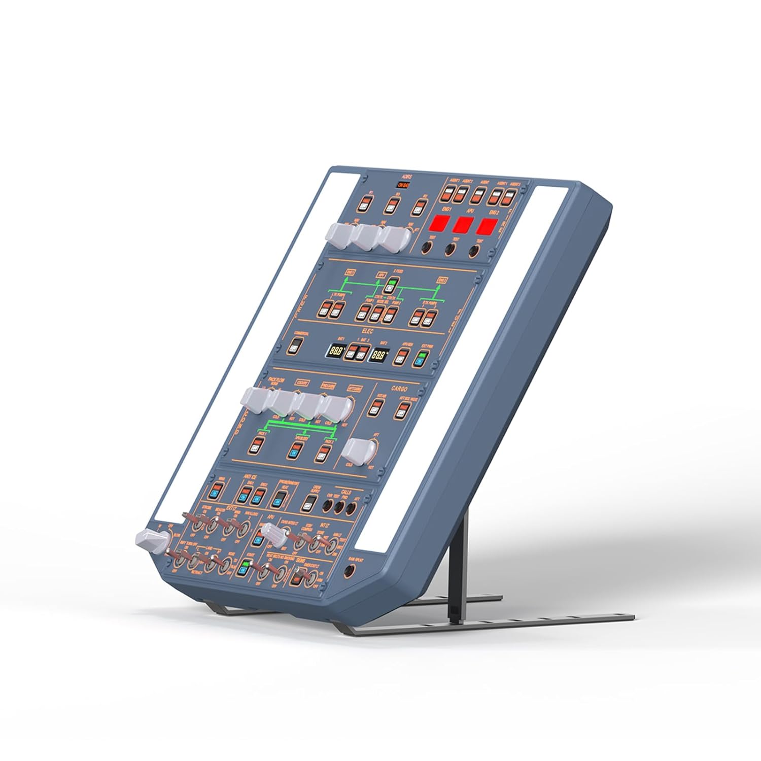 • ПЪЛНО ПОКРИТИЕ НА ОСНОВНИТЕ ХАРАКТЕРИСТИКИ Панелът интегрира всички основни функции на повърхността на A320, включително инерциалната референтна система (IRS), панела на горивната система, панела за контрол на климатизацията и налягането, главния/стартов контрол на APU и контрола на външното осветление, за да се осигури пълен контрол на фазите на полета.