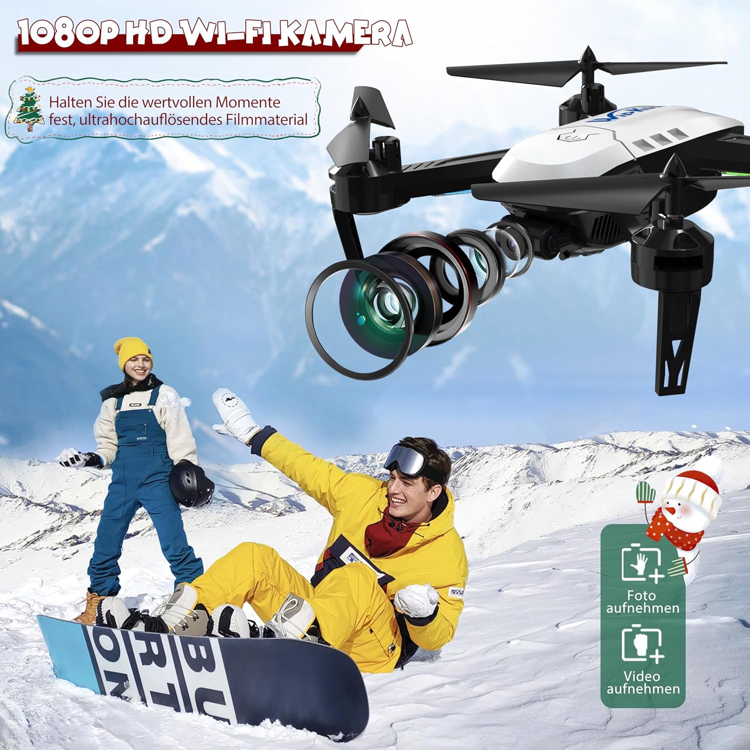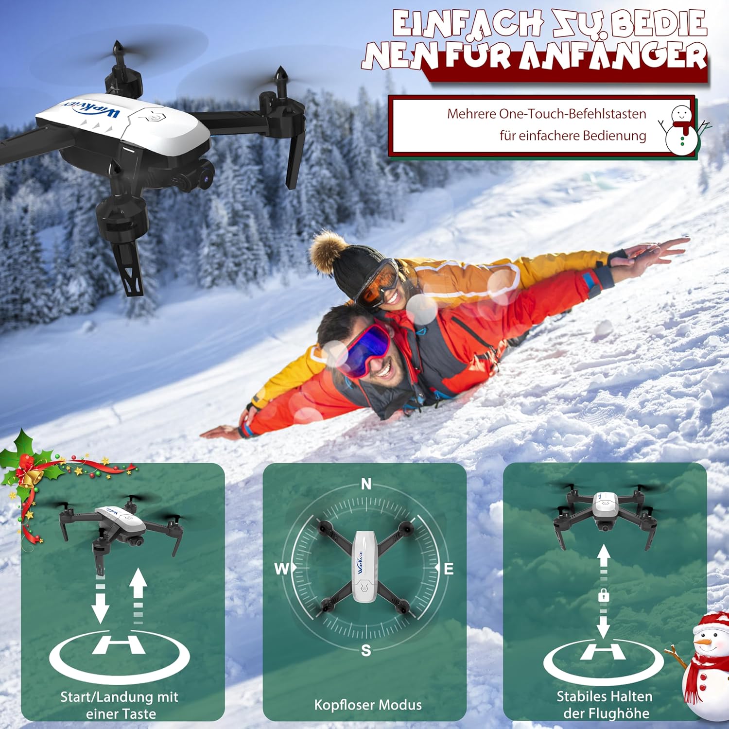 Wipkviey T6 FPV дрон с 1080P камера - WiFi квадрокоптер + 2 батерии, гравитационно разпознаване, режим на обръщане, работа с един бутон, автоматично връщане и режим Headless за начинаещи