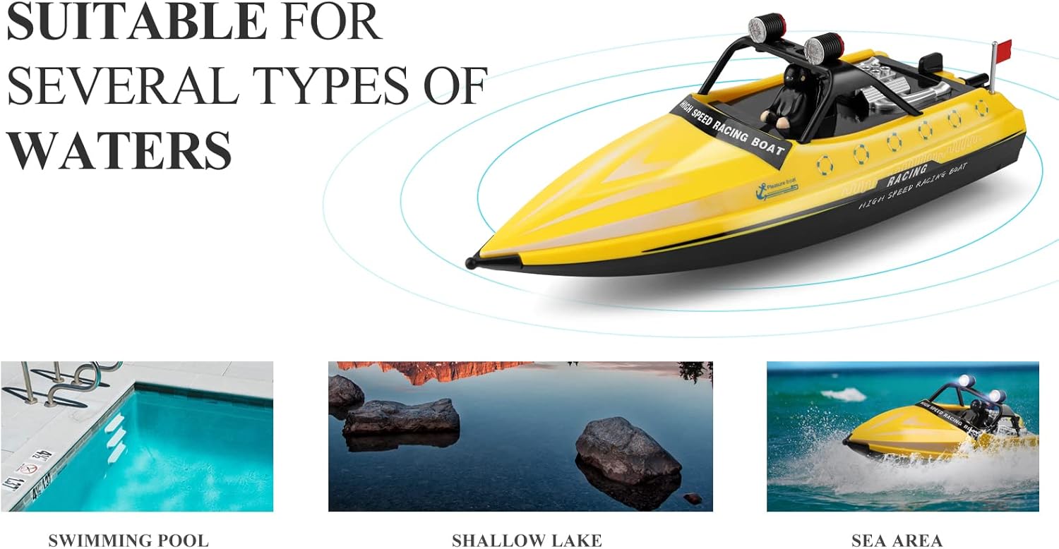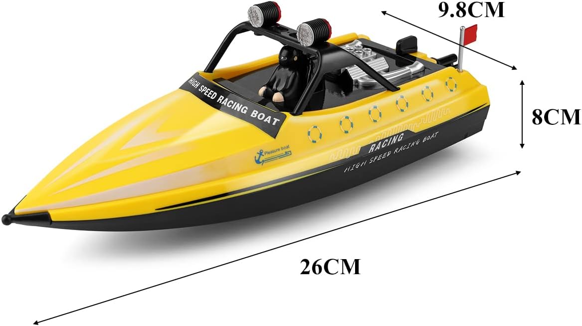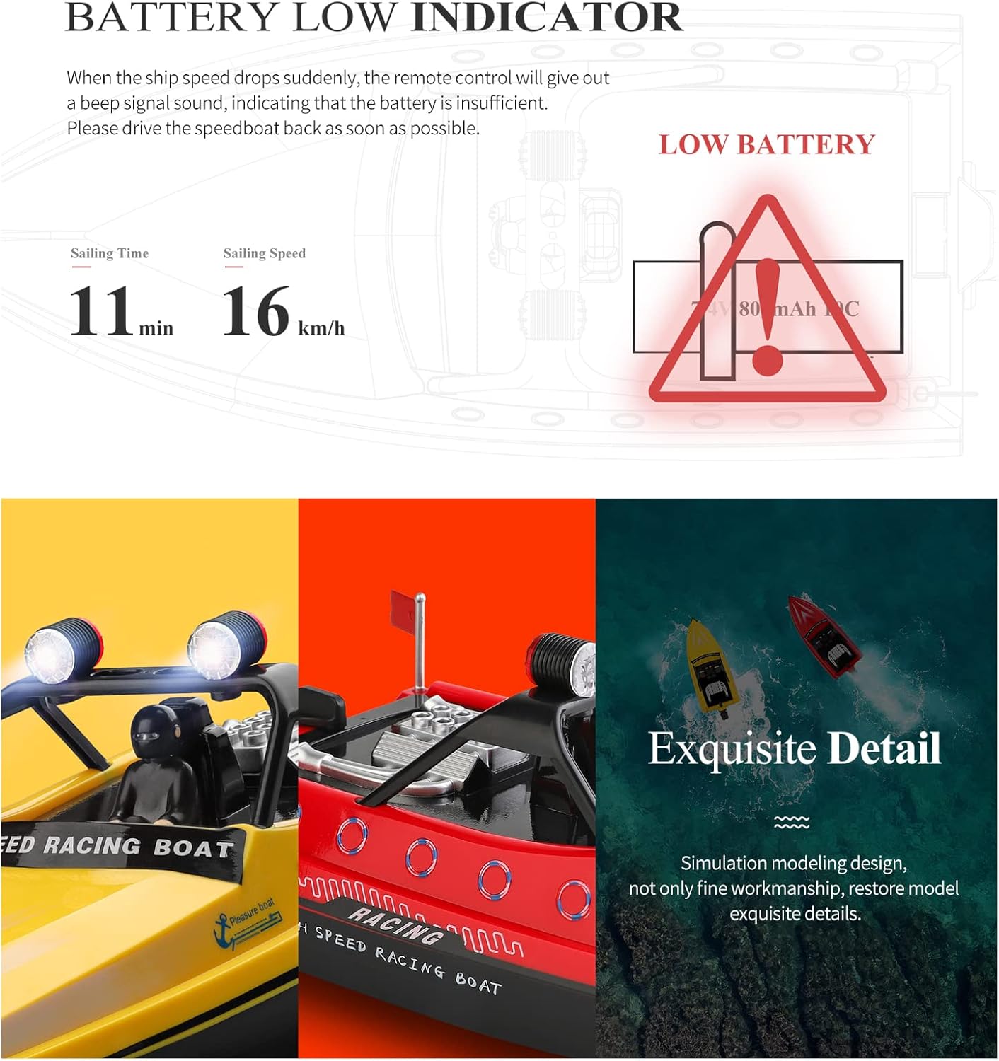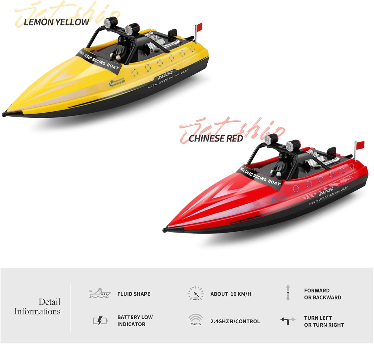 • Функция: Напред, назад, завой наляво и надясно, навигационна светлина, индикатор за изтощена батерия, 16 км/ч, водна струя, кормилно управление с пълна пропорция.