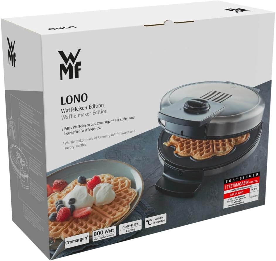 WMF Lono Waffle Iron Edition, гофретник с форма на сърце, напълно регулируема степен на изпичане, 900 W, Cromargan мат/сребрист
