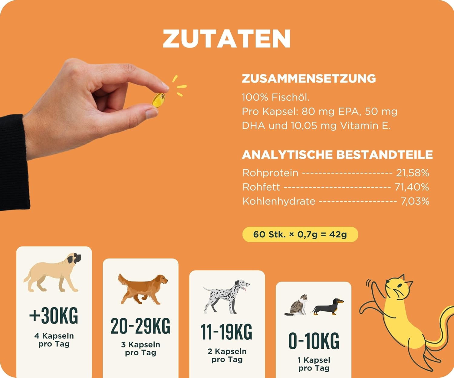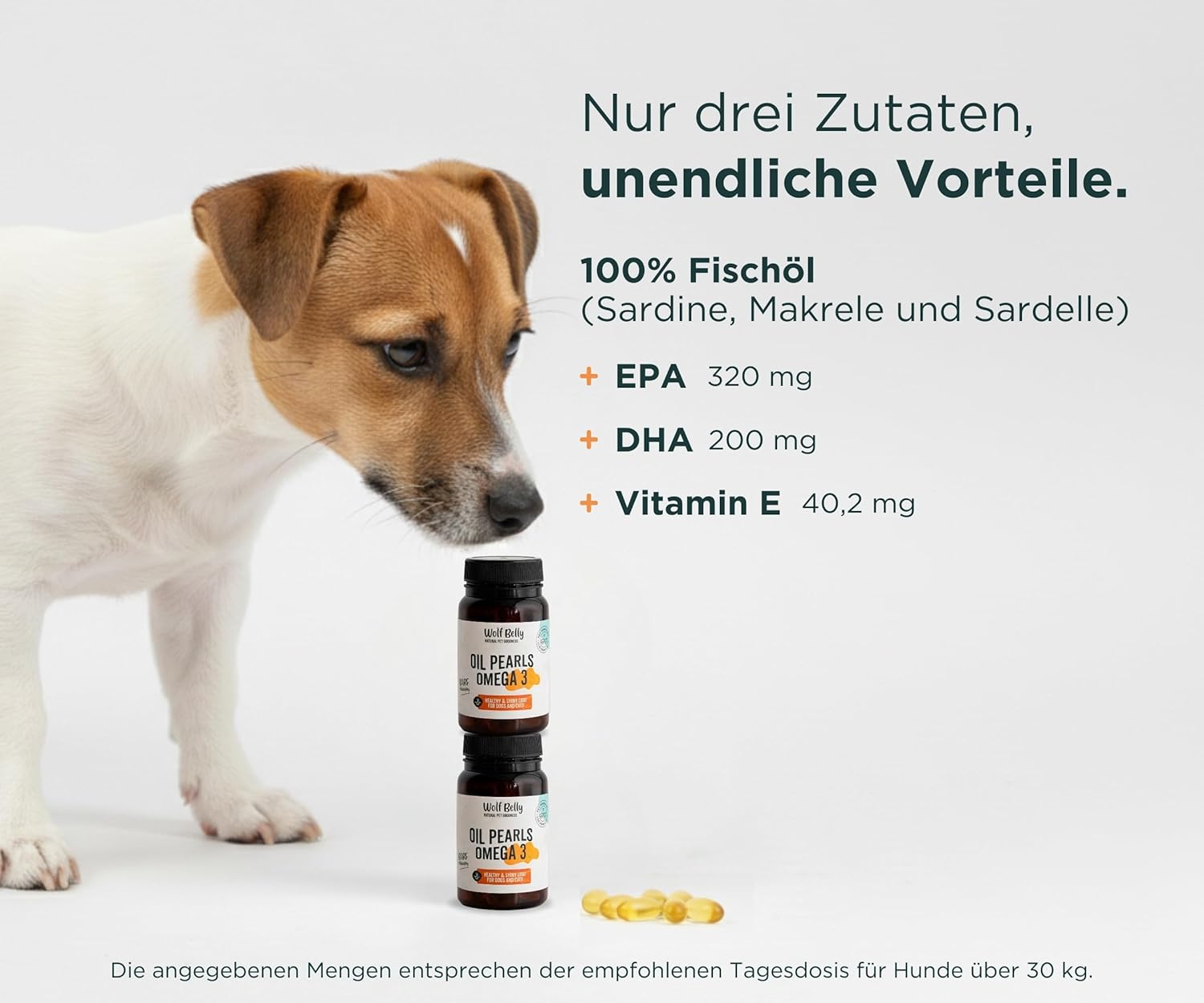 Wolf Belly - Омега 3 за кучета и котки 100% натурален (60 капсули) с EPA и DHA | Чисто рибено масло | Здрава кожа и лъскава козина | Силни стави | Здрава имунна система - Произведено в Европа