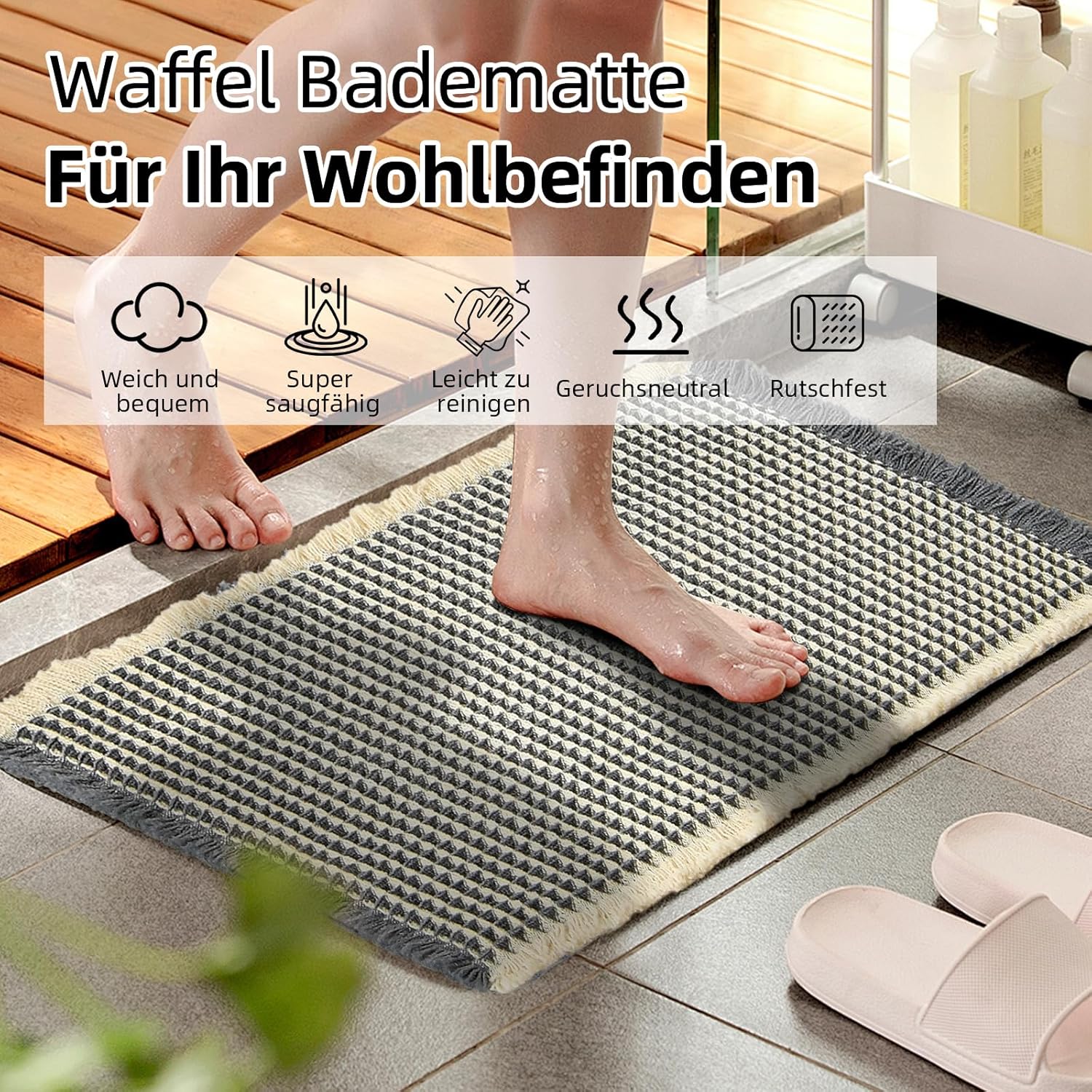 Нашите постелки за баня са изработени с високо абсорбиращ вафлен мотив. Тяхната абсорбция гарантира, че банята ви ще остане суха.